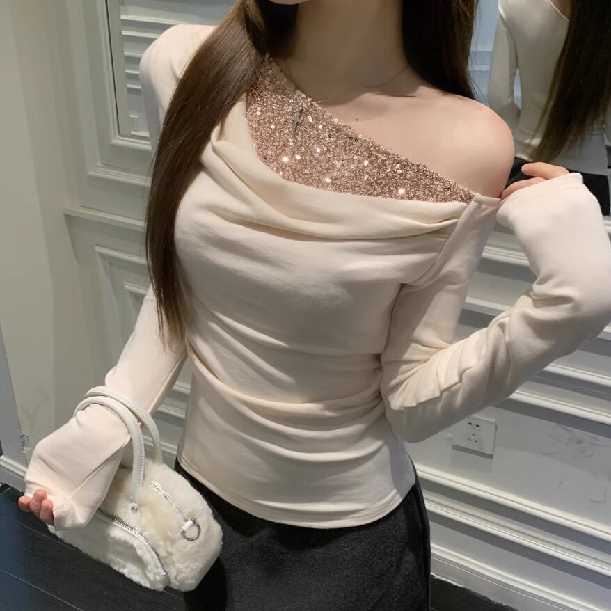 レースカラーアシメボタンドッキングトップス ・71106