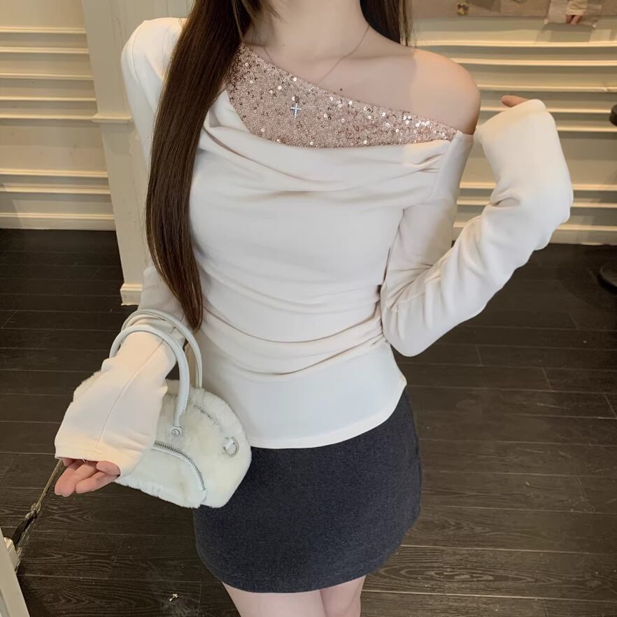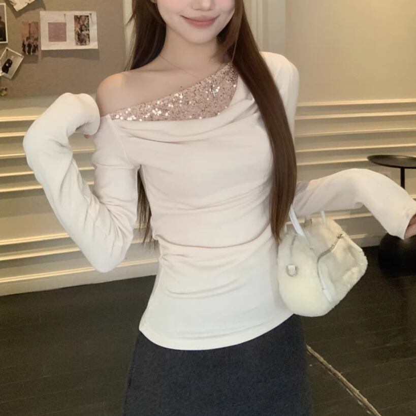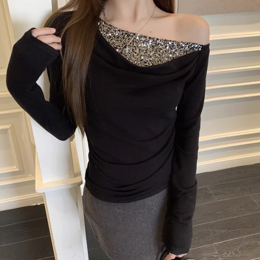 2色/フェイクレイヤードフーデッドニットトップス ・75335