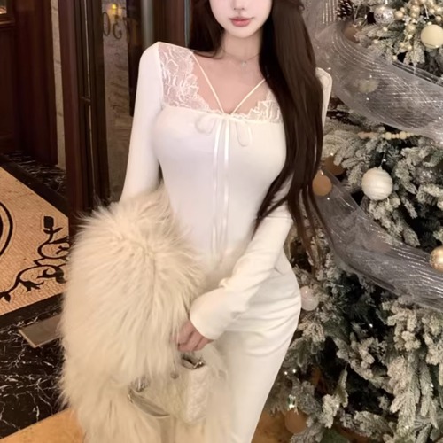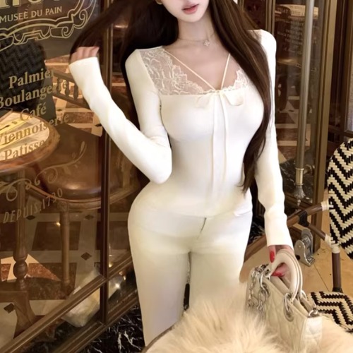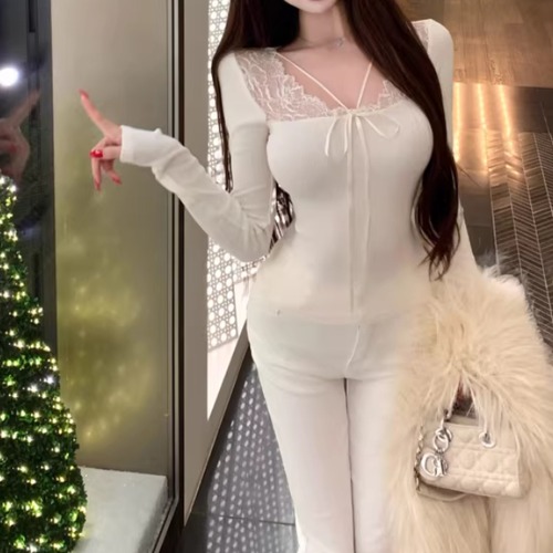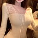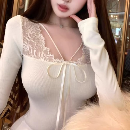 レースカラーアシメボタンドッキングトップス ・71106