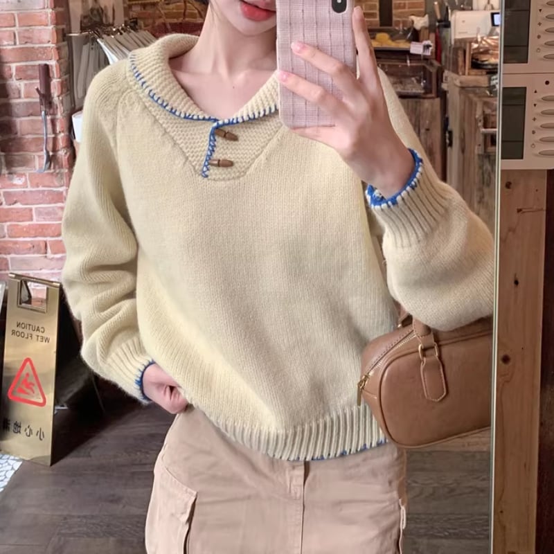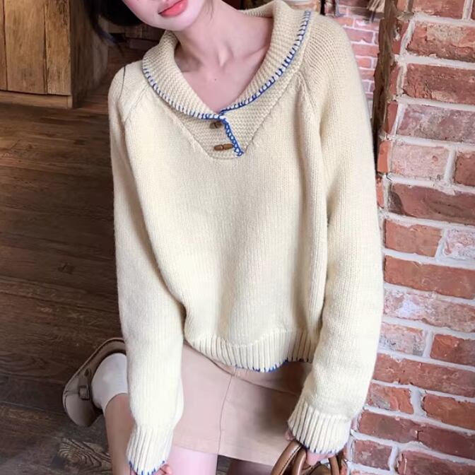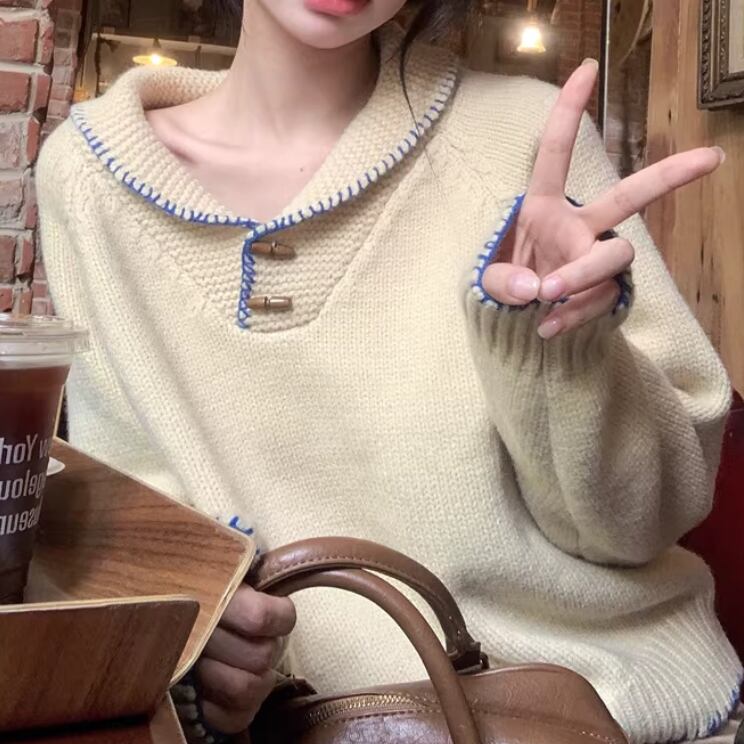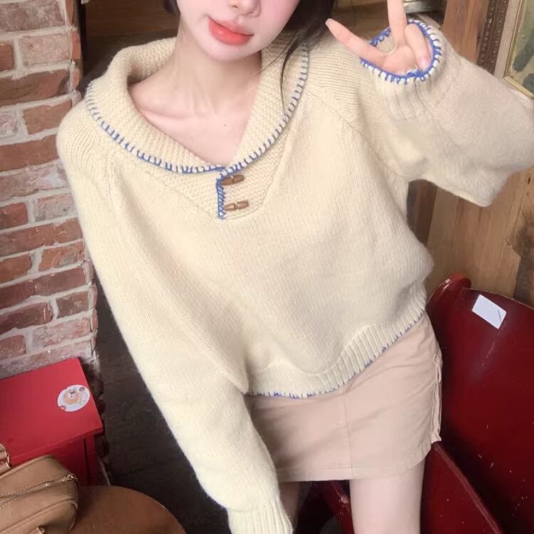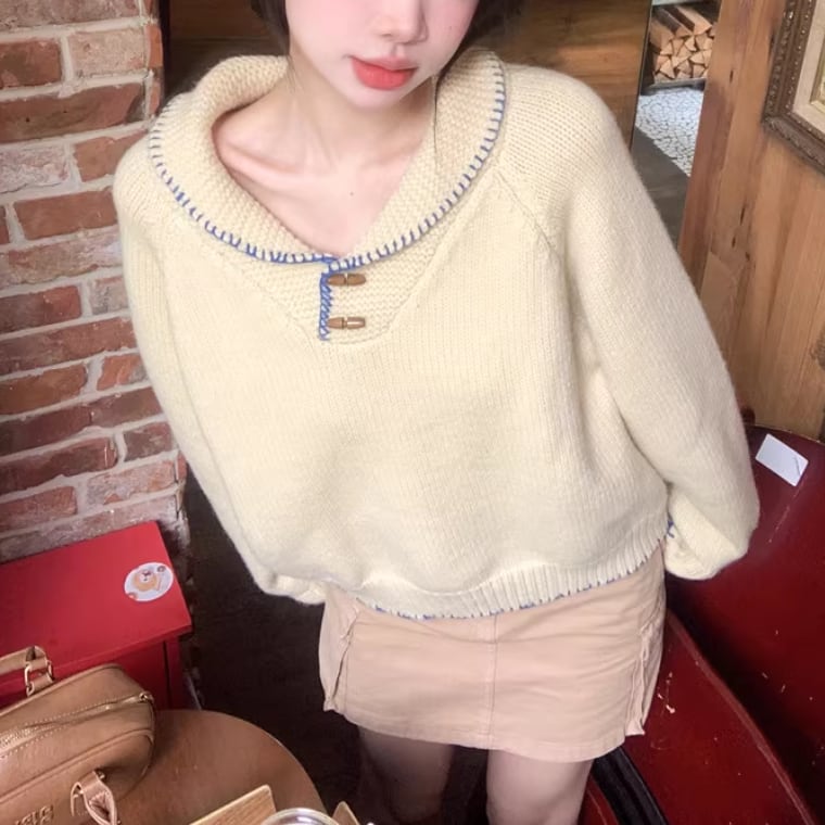 2色/バックリボンレースVネックニット ・75154