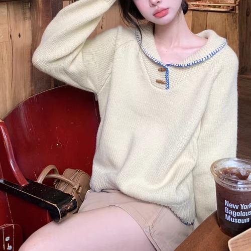 3色/フロントボタンビジューデコオフショルニット ・74994