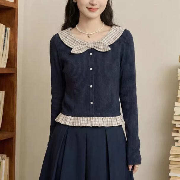 レースカラーアシメボタンドッキングトップス ・71106
