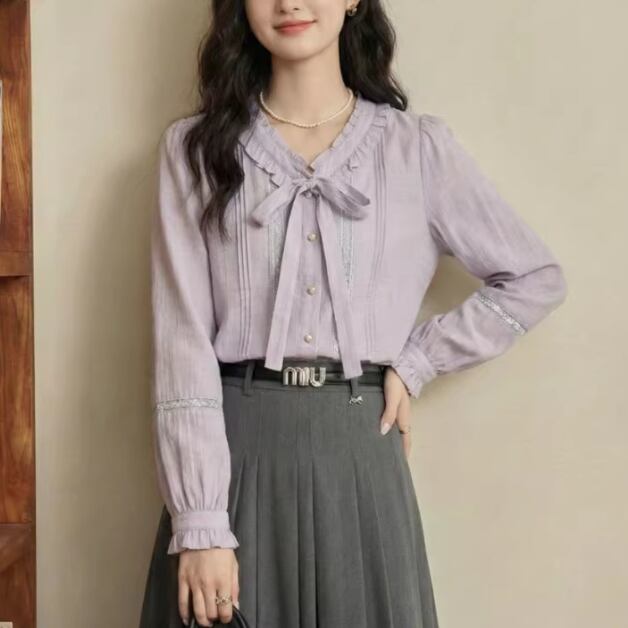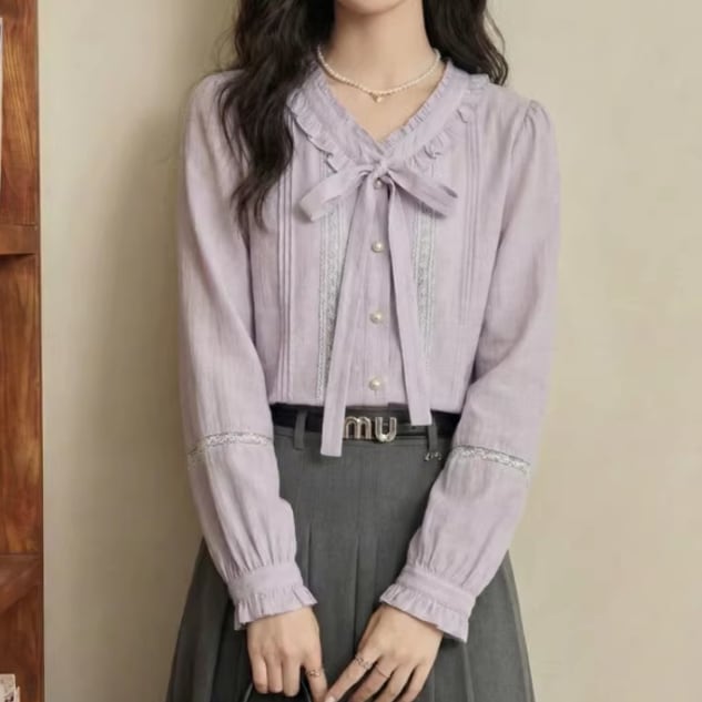 2色/Vネックタックデザインペプラムブラウス ・76114