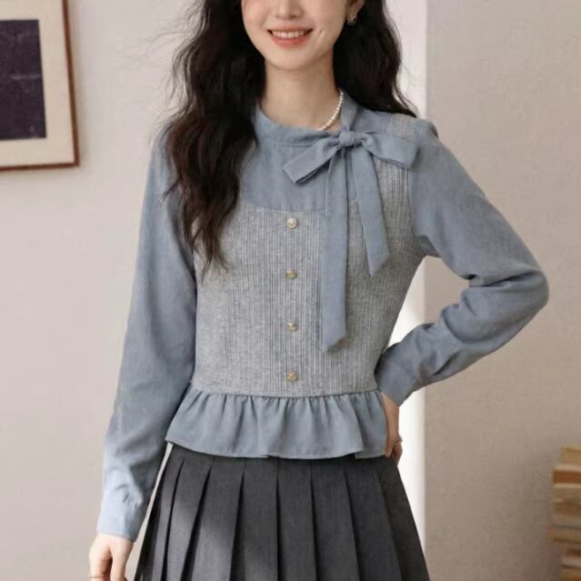 レースカラーアシメボタンドッキングトップス ・71106