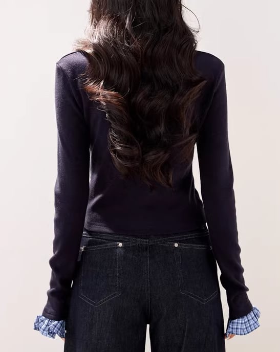 レースカラーアシメボタンドッキングトップス ・71106
