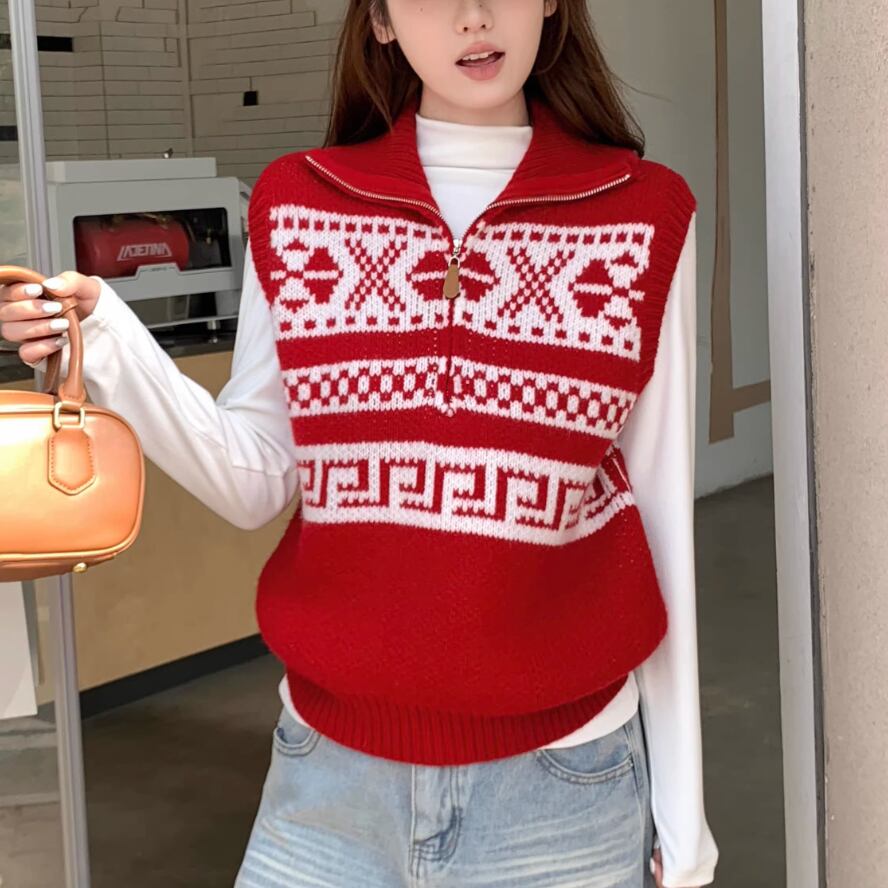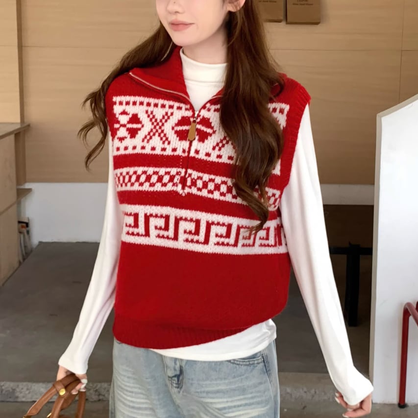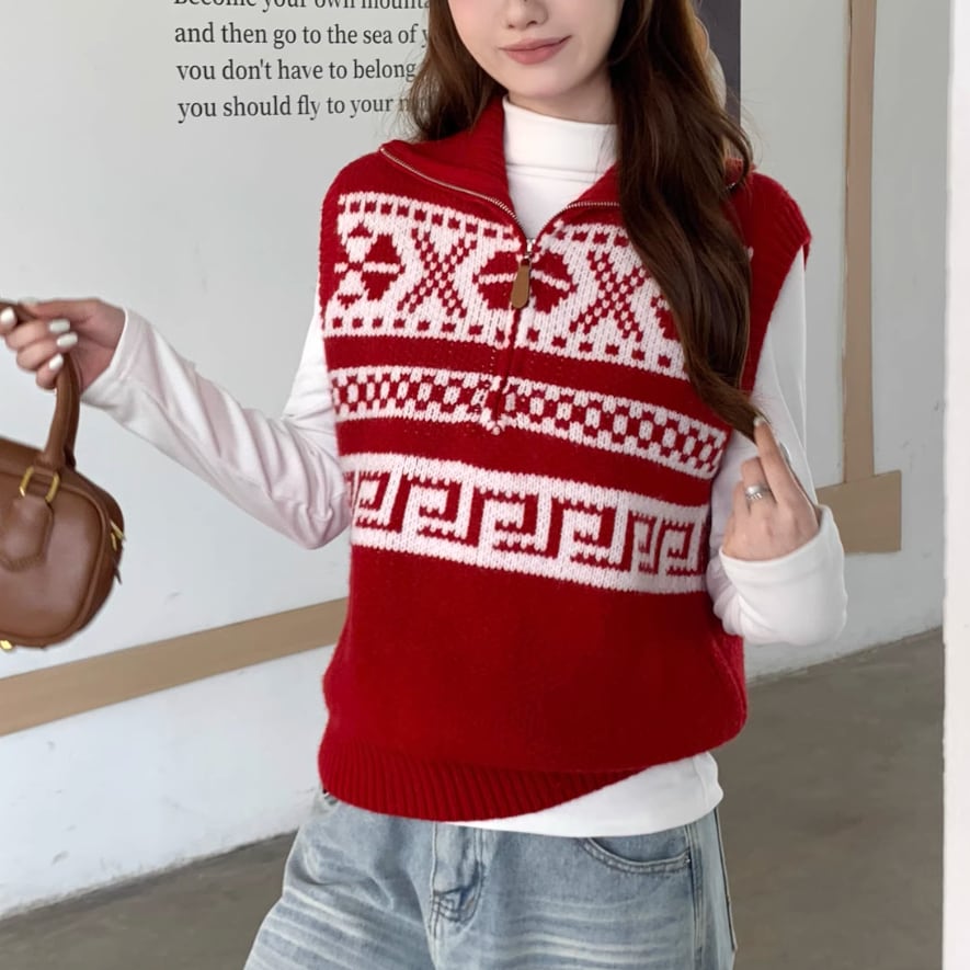 2色/ノルディック柄ポロカラーニットカーデ ・72764