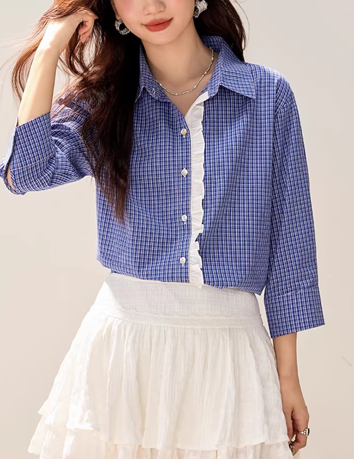 2色/Vネックタックデザインペプラムブラウス ・76114