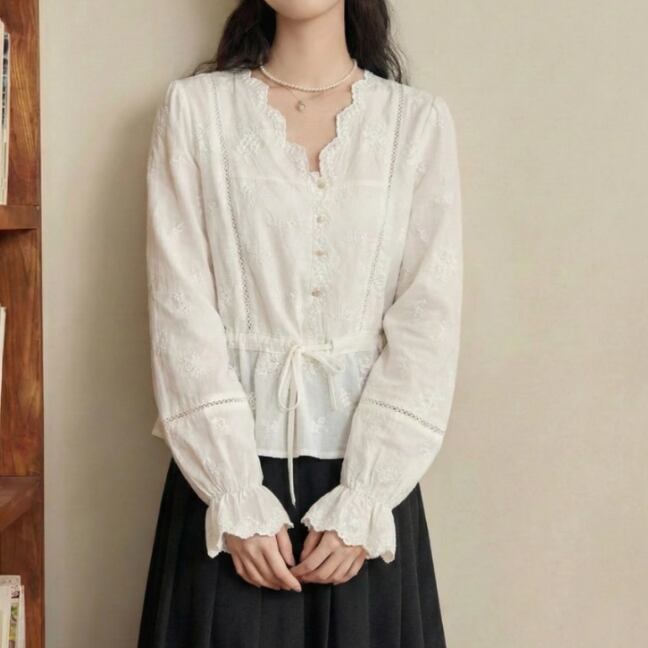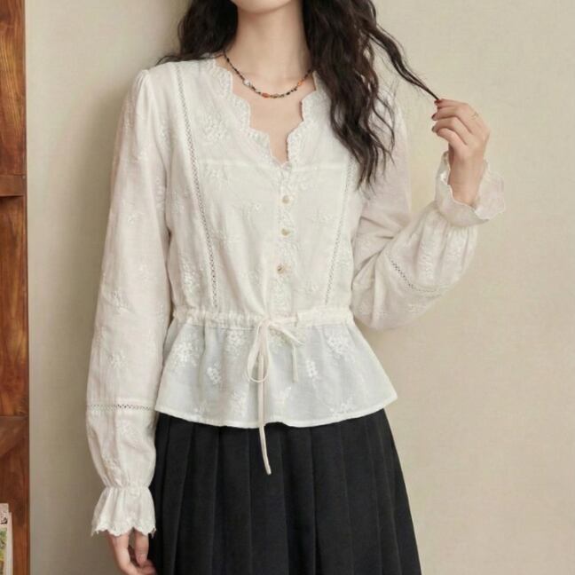 2色/Vネックタックデザインペプラムブラウス ・76114