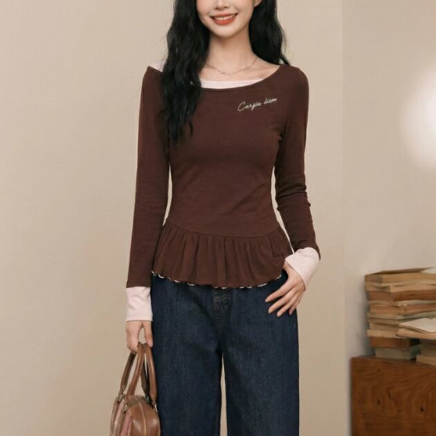 3色/スクエアネックペプラムトップス ・75343