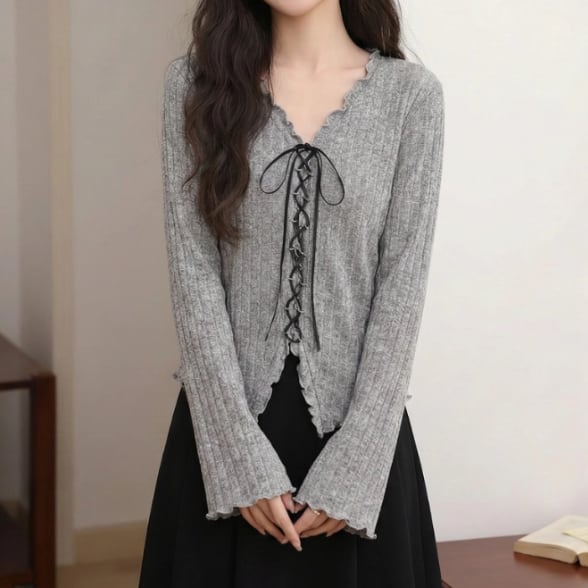 レースカラーアシメボタンドッキングトップス ・71106