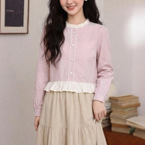 2色/Vネックタックデザインペプラムブラウス ・76114