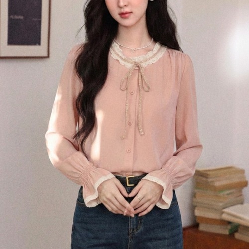 2色/Vネックタックデザインペプラムブラウス ・76114