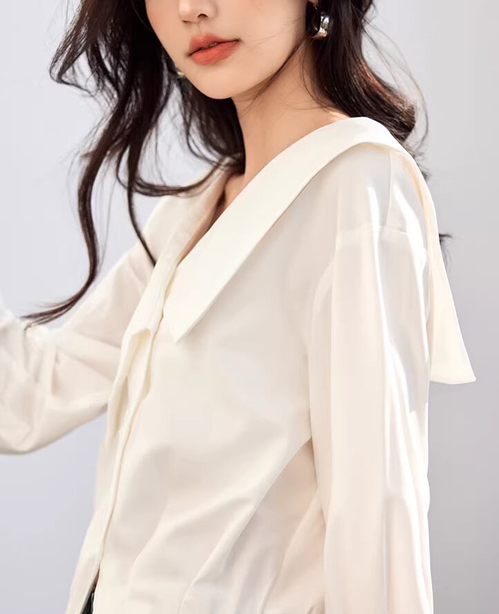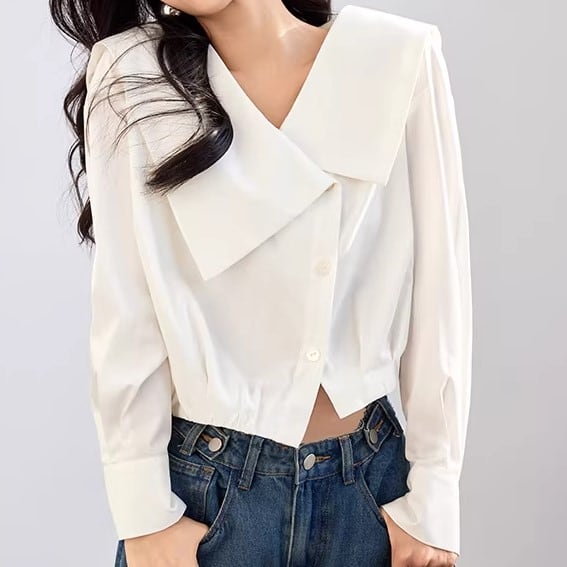 2色/Vネックタックデザインペプラムブラウス ・76114