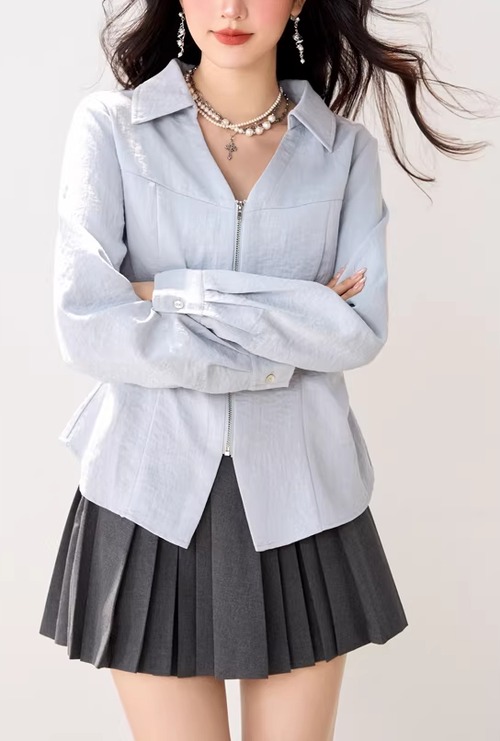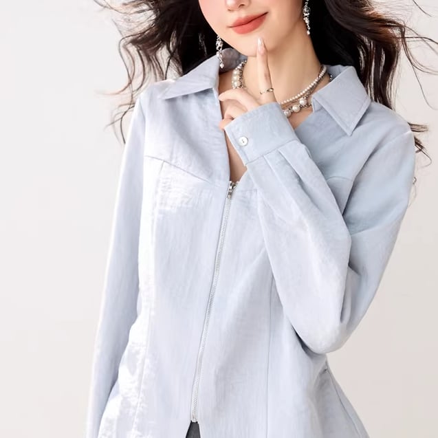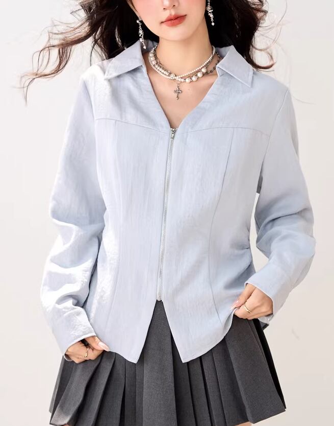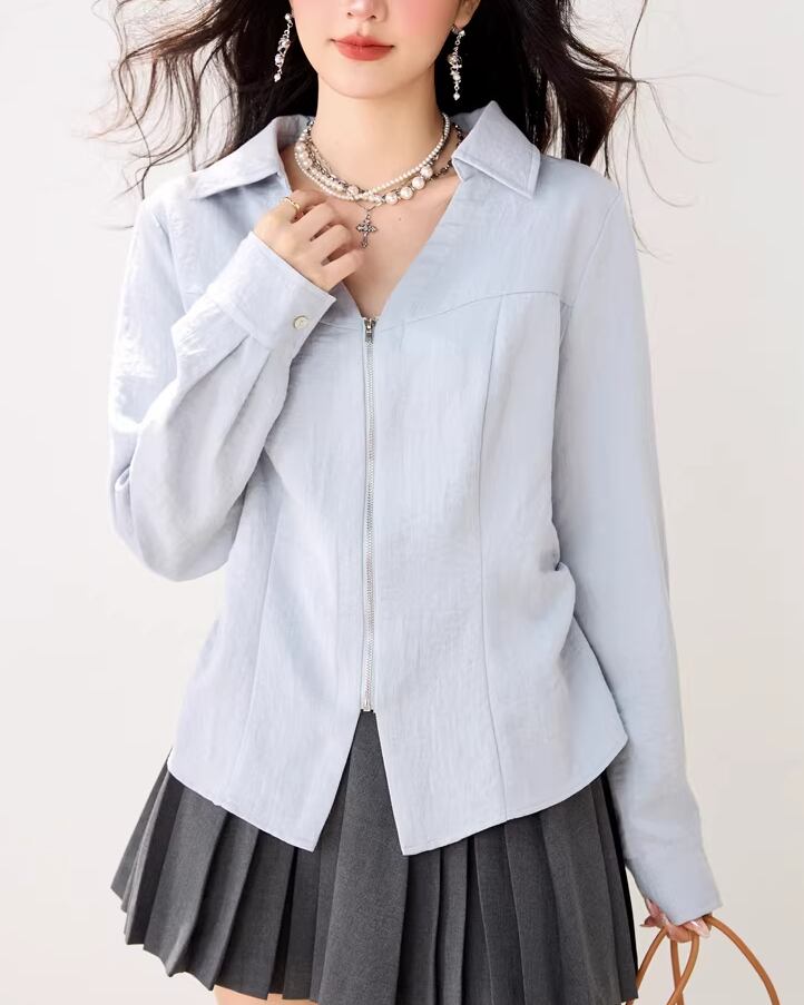 2色/Vネックタックデザインペプラムブラウス ・76114