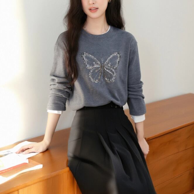 2色/フェイクレイヤードフーデッドニットトップス ・75335