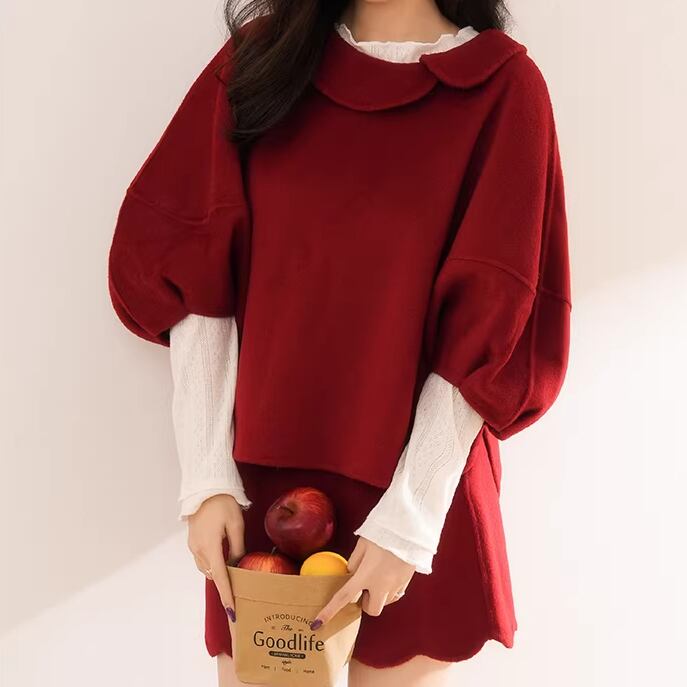 ▽Instagram「新作情報配信中」 フォローお願いいたします。 https://www.instagram.com/sucrier_closet/ ▼カラー ボルドー ▼サイズ [ Sサイズ ] プルオーバー:着丈56cm 肩幅74cm 袖丈16cm スカート:着丈35cm ウエスト62cm ヒップ92cm [ Mサイズ ] プルオーバー:着丈57cm 肩幅75.5cm 袖丈16.5cm スカート:着丈36cm ウエスト66cm ヒップ96cm [ Lサイズ ] プルオーバー:着丈58cm 肩幅77cm 袖丈17cm スカート:着丈37cm ウエスト70cm ヒップ100cm [ XLサイズ ] プルオーバー:着丈59cm 肩幅78.5cm 袖丈17.5cm スカート:着丈38cm ウエスト74cm ヒップ104cm ※1-3cm程度の誤差がある場合がございます。予めご了承ください。 ▼シーズン 秋,冬 ▼同じカテゴリの商品はこちら https://www.sucrier.jp/categories/1737171 ▽お支払い方法 ・クレジットカード決済 ・キャリア決済 (docomo/au/Softbank/Y!mobile) ・後払い決済 (商品お届け後コンビニ払いなど) ▽注意点 ※こちらの商品は決済から10日-3週間前後でのお届けとなります。 ※配送日時指定等に関しては、ご指定できないことご了承くださいませ。 ※できる限り早くお届けできるように手配させて頂きます。 ※検品はしておりますが、もし届いた商品に不備がありましたら、誠実に対応させていただきます。 商品ID:SC075066