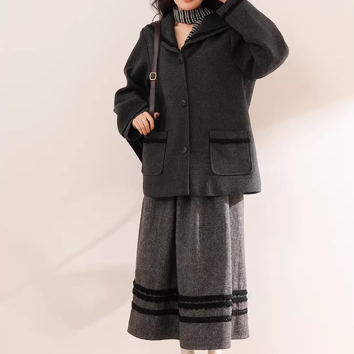 ▽Instagram「新作情報配信中」 フォローお願いいたします。 https://www.instagram.com/sucrier_closet/ ▼サイズ [ Sサイズ ] コート:着丈69cm バスト110cm 肩幅42cm 袖丈60cm スカート:着丈85cm ウエスト63cm [ Mサイズ ] コート:着丈70cm バスト114cm 肩幅43cm 袖丈60.5cm スカート:着丈86cm ウエスト67cm [ Lサイズ ] コート:着丈71cm バスト118cm 肩幅44cm 袖丈61cm スカート:着丈87cm ウエスト71cm [ XLサイズ ] コート:着丈72cm バスト122cm 肩幅45cm 袖丈61.5cm スカート:着丈88cm ウエスト75cm ※1-3cm程度の誤差がある場合がございます。予めご了承ください。 ▼シーズン 秋,冬 ▼同じカテゴリの商品はこちら https://www.sucrier.jp/categories/1737171 ▽お支払い方法 ・クレジットカード決済 ・キャリア決済 (docomo/au/Softbank/Y!mobile) ・後払い決済 (商品お届け後コンビニ払いなど) ▽注意点 ※こちらの商品は決済から10日-3週間前後でのお届けとなります。 ※配送日時指定等に関しては、ご指定できないことご了承くださいませ。 ※できる限り早くお届けできるように手配させて頂きます。 ※検品はしておりますが、もし届いた商品に不備がありましたら、誠実に対応させていただきます。 商品ID:SC075065