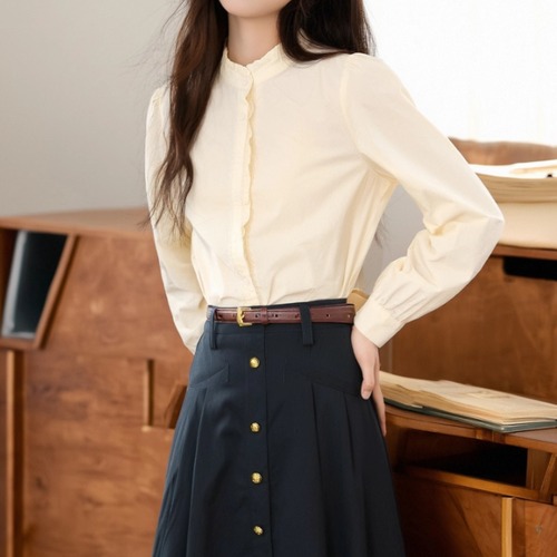 2色/Vネックタックデザインペプラムブラウス ・76114
