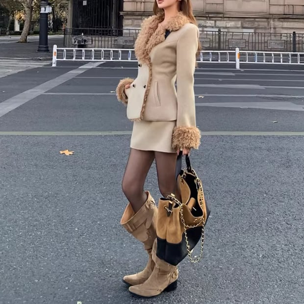 【2点セット】ファーカラーリボンジャケット+ティアードスカート ・75381