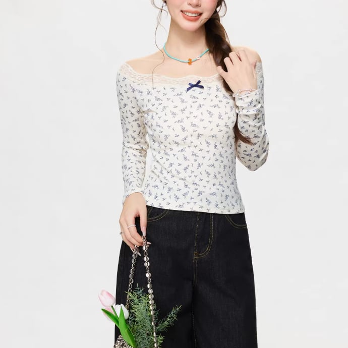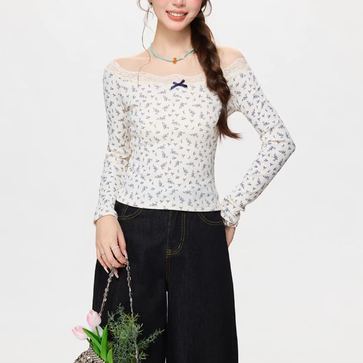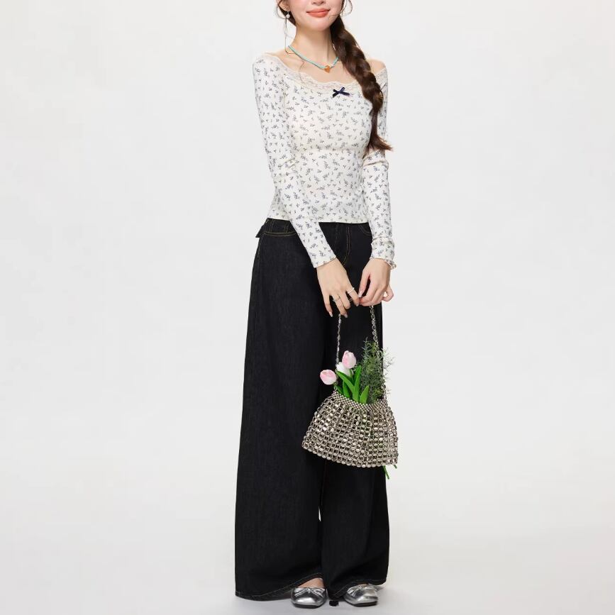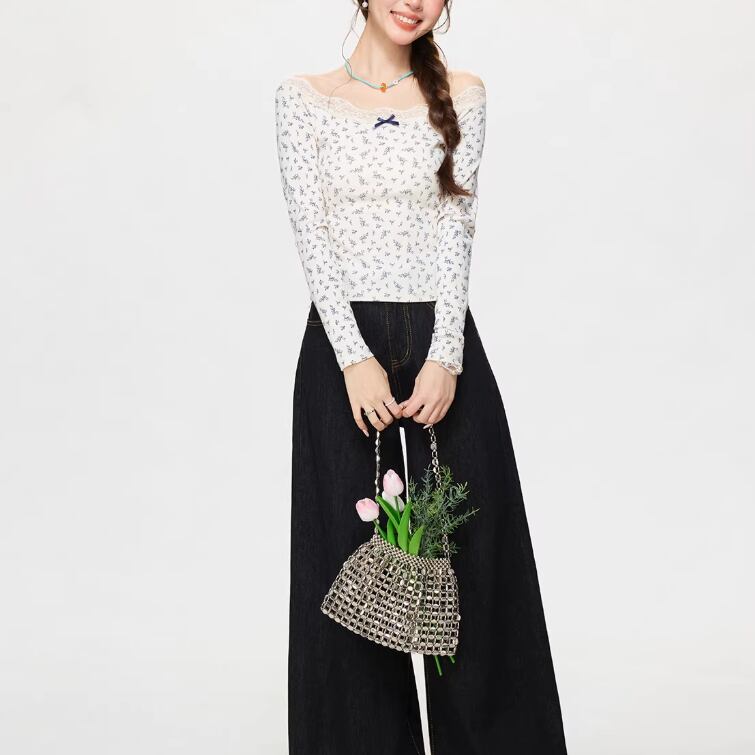 レースカラーアシメボタンドッキングトップス ・71106