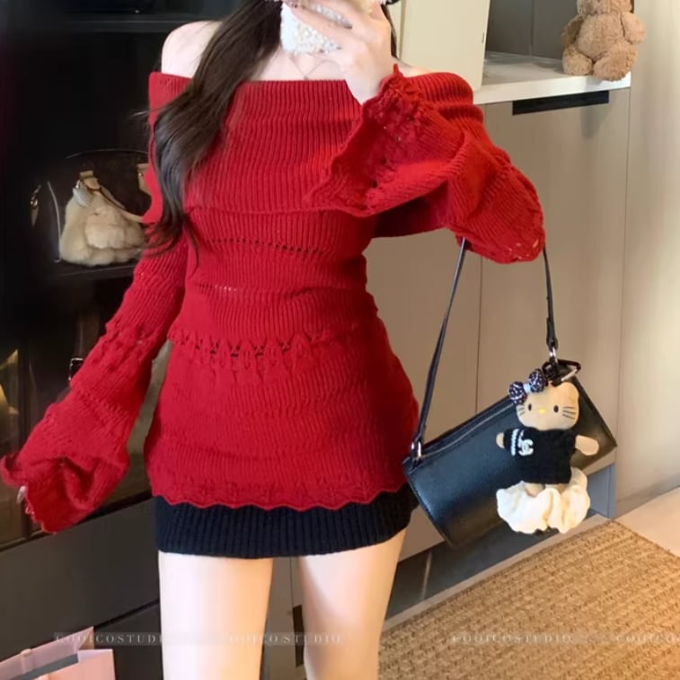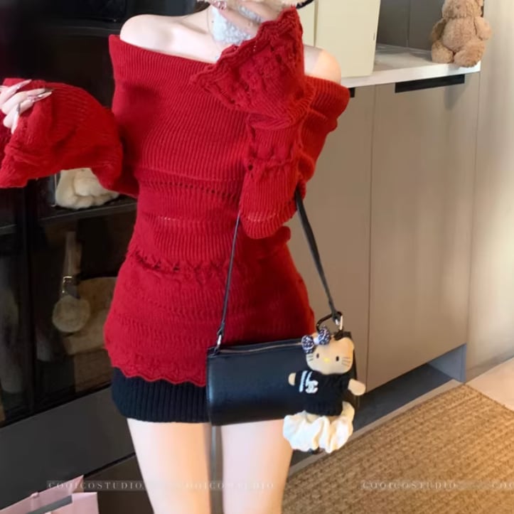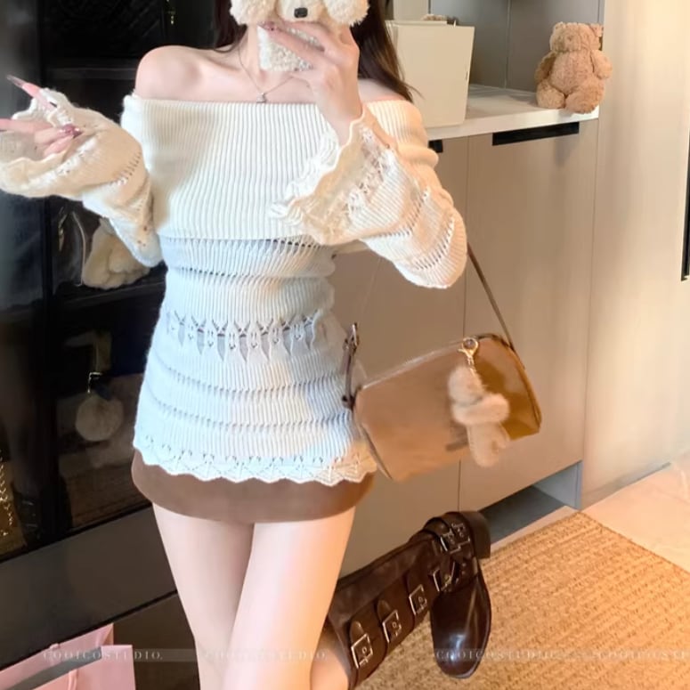 6色/オフショルルーズニット ・75150