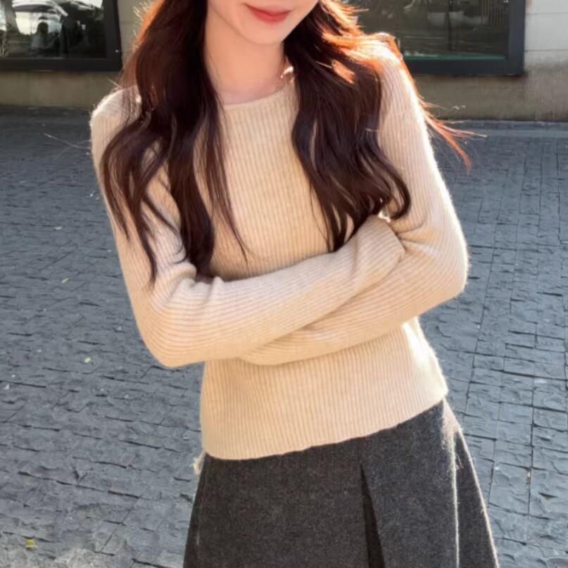 4色/クルーネッククロップドリブニット ・75152