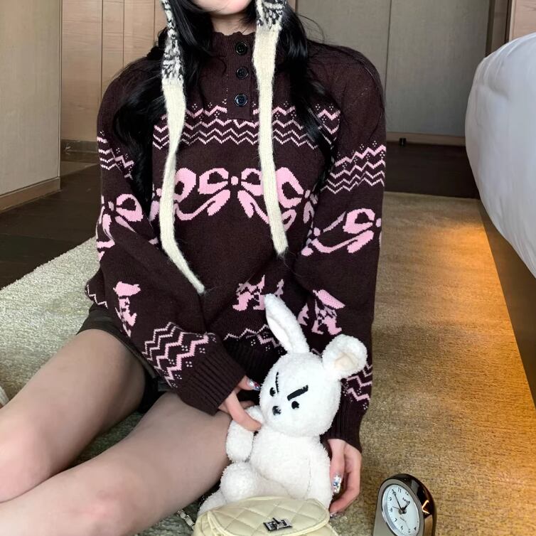 2色/バックリボンレースVネックニット ・75154