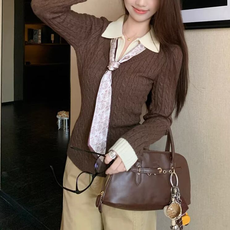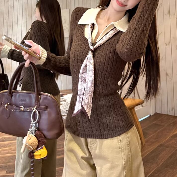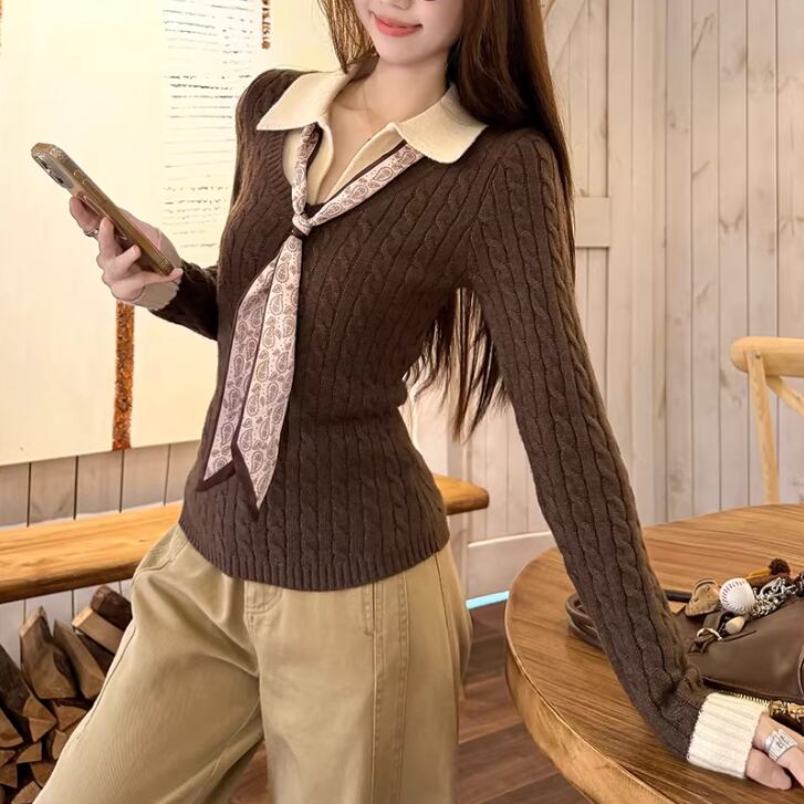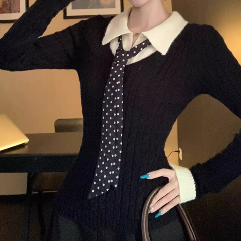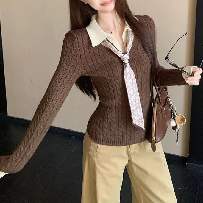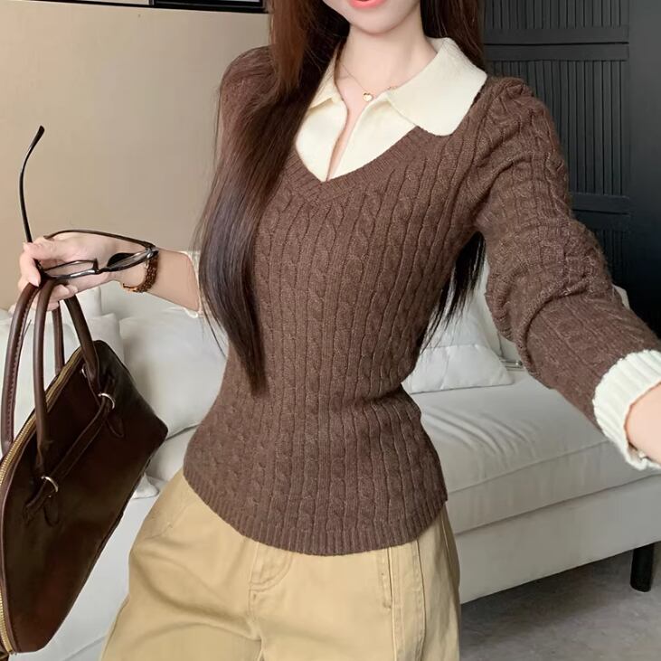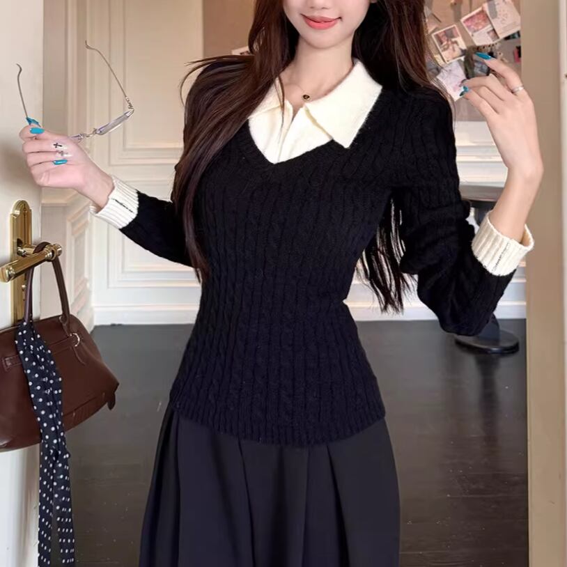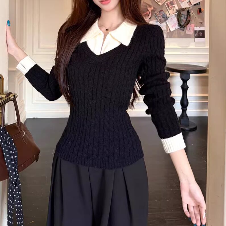 2色/バックリボンレースVネックニット ・75154