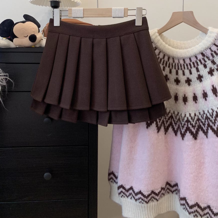 【2点セット】レイヤード風ツイードジャケット+プリーツスカート ・65693