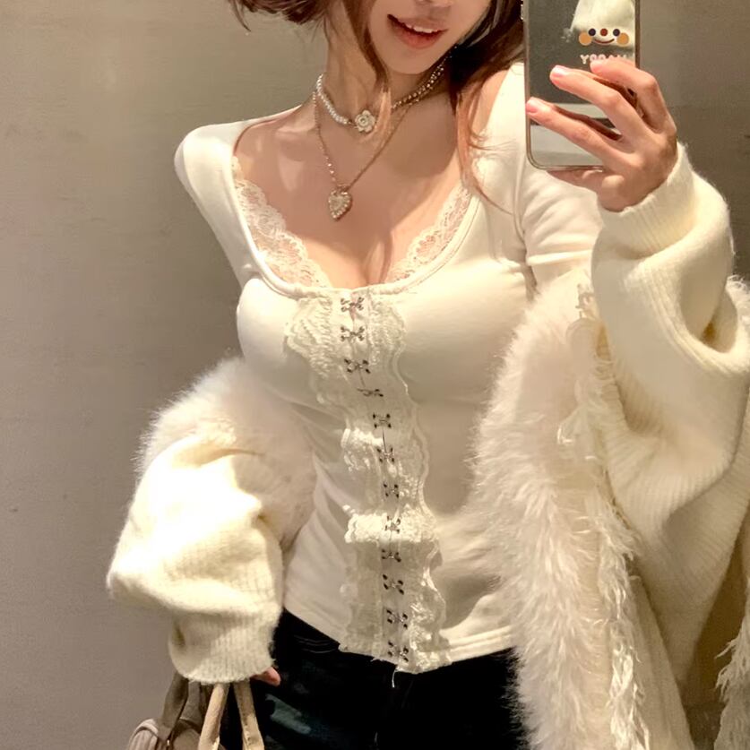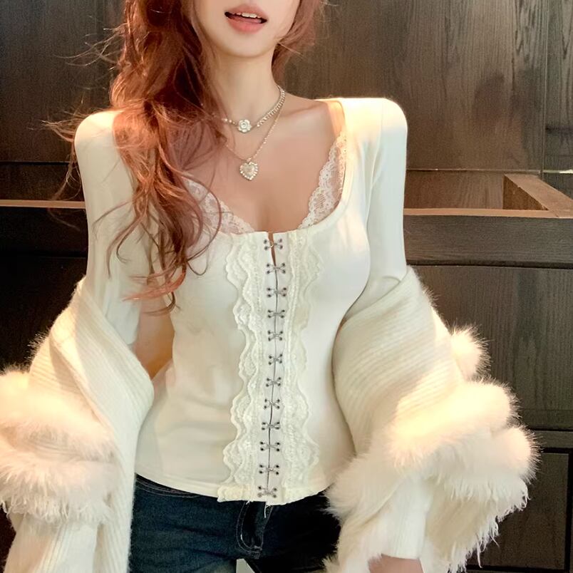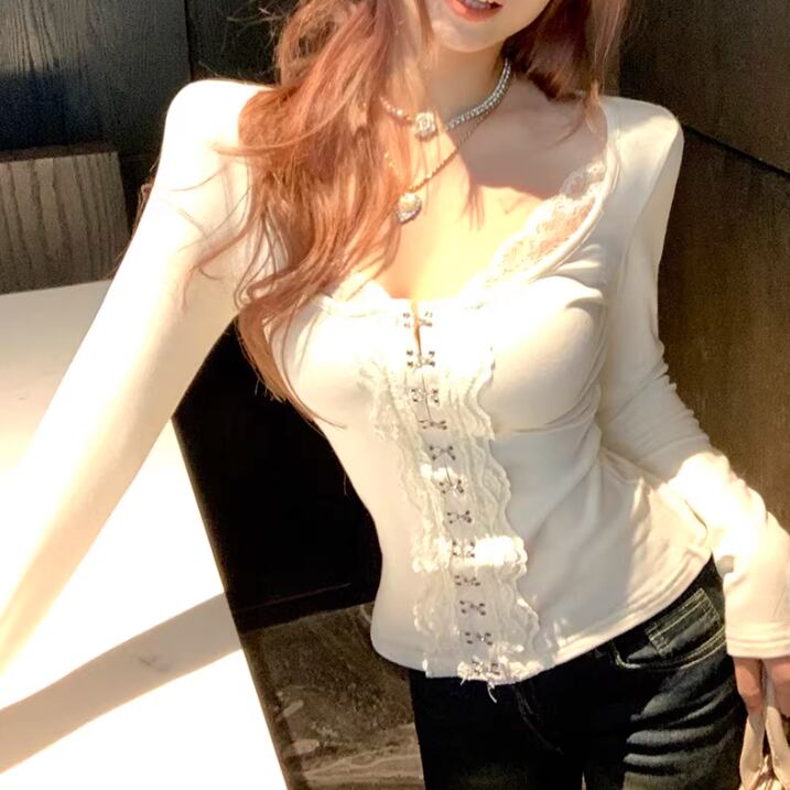レースカラーアシメボタンドッキングトップス ・71106
