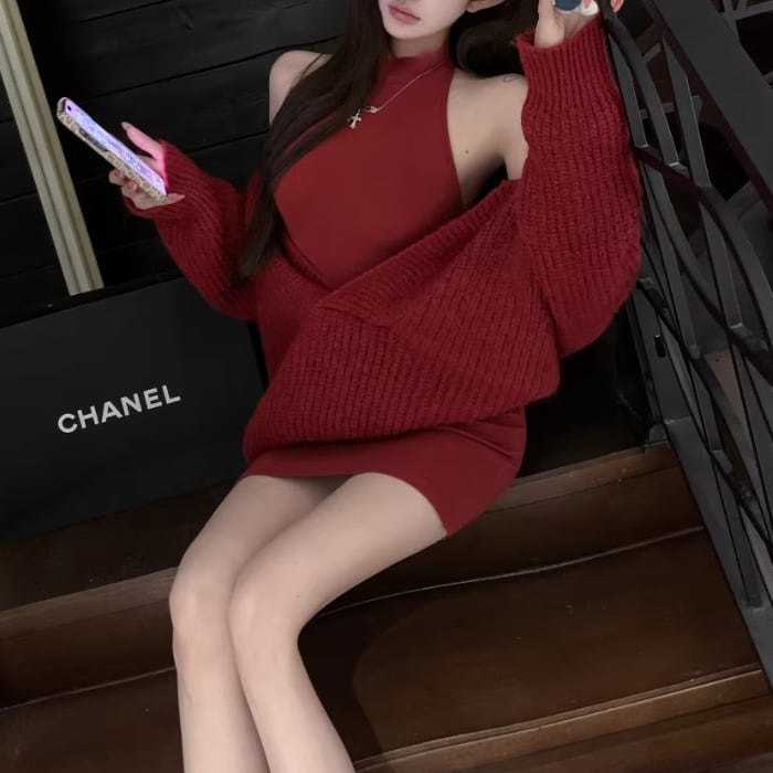 【2点セット】ショートジャケット+ファートリムティアードリボンキャミワンピ ・63097