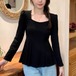 2色/フェイクレイヤードフーデッドニットトップス ・75335