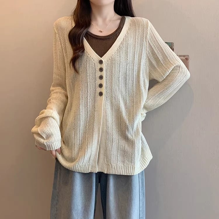 2色/フェイクレイヤードケーブルニットトップス ・75332