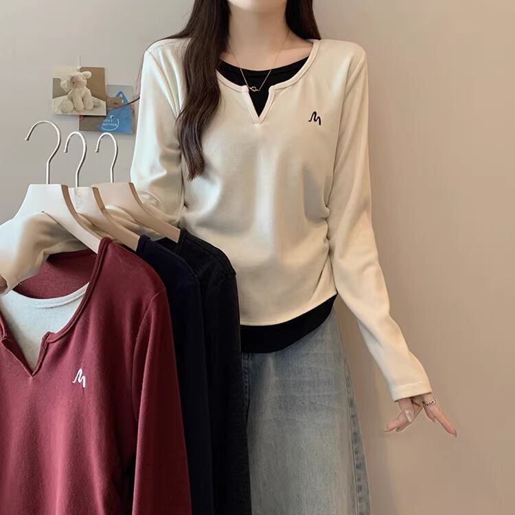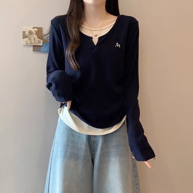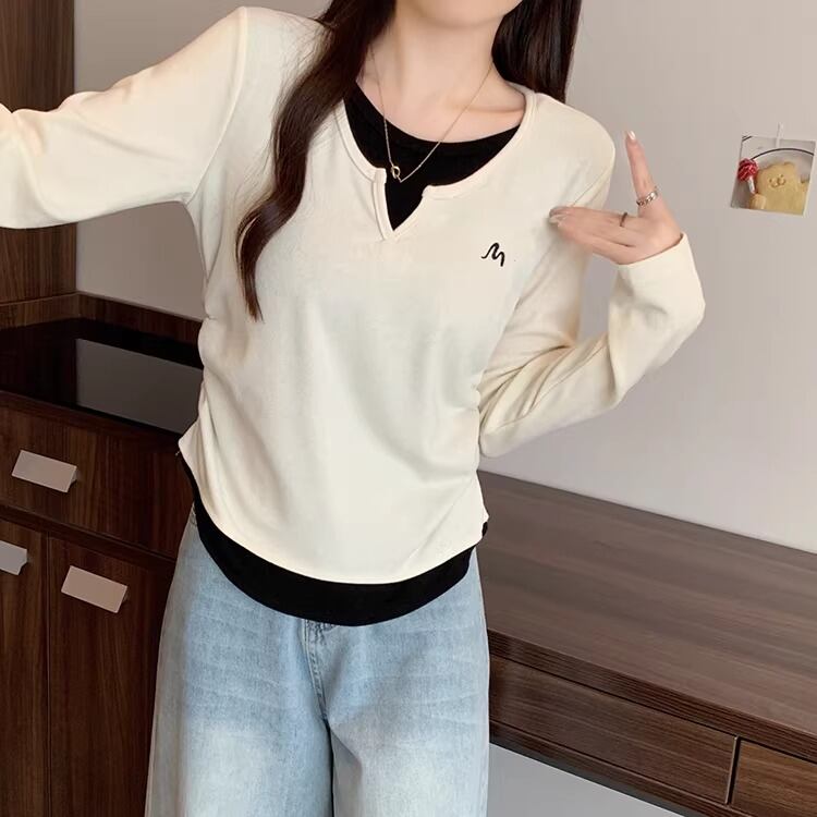 2色/フェイクレイヤードケーブルニットトップス ・75332