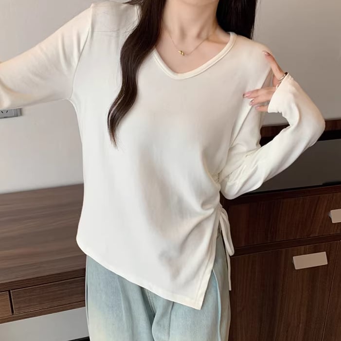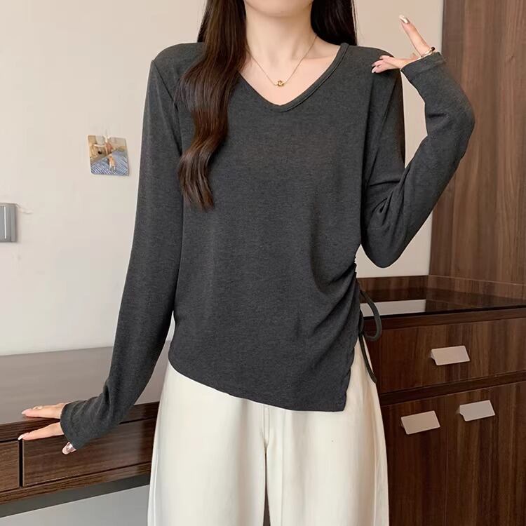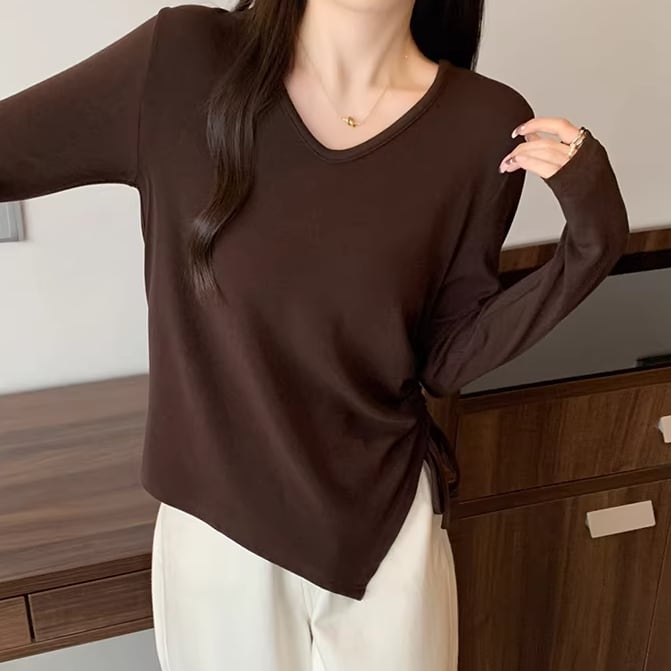 2色/フェイクレイヤードフーデッドニットトップス ・75335