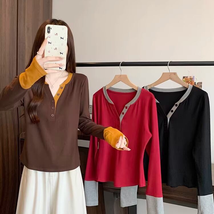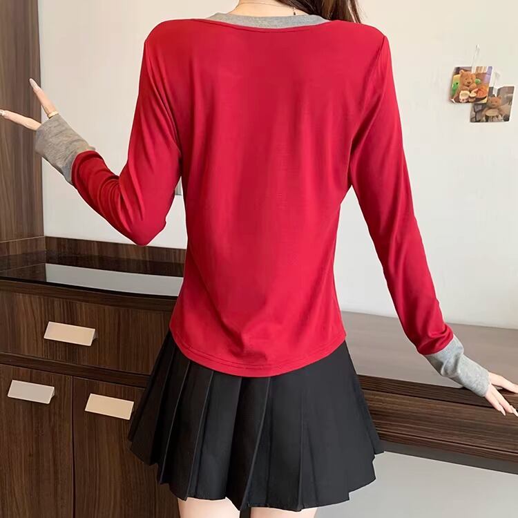 2色/フェイクレイヤードフーデッドニットトップス ・75335