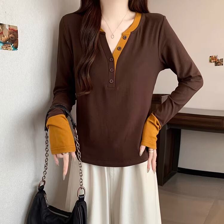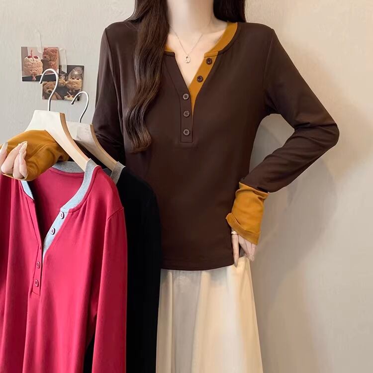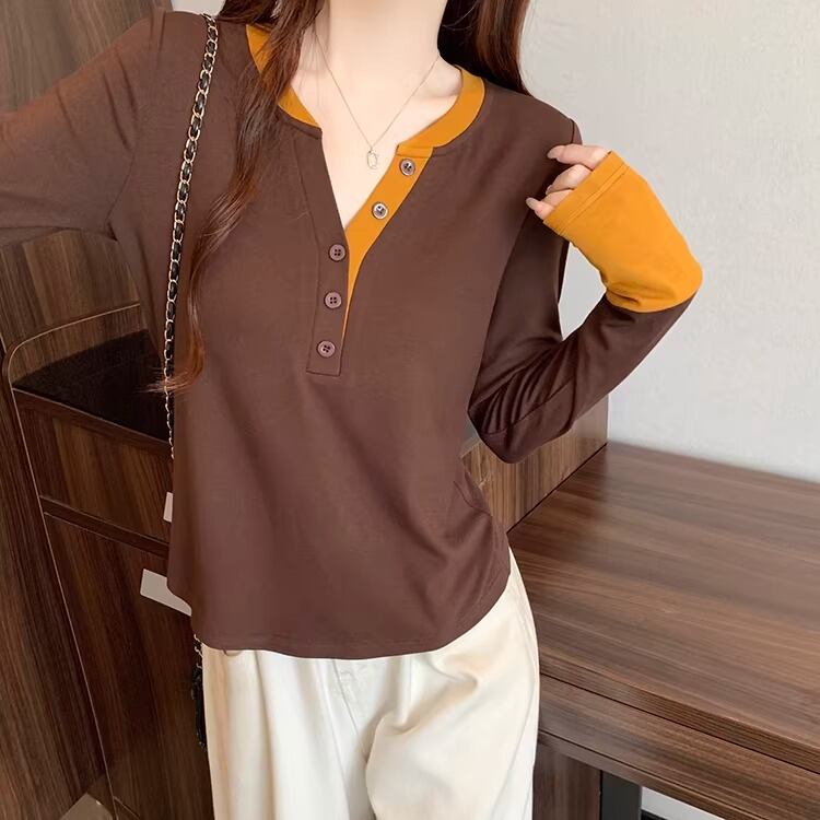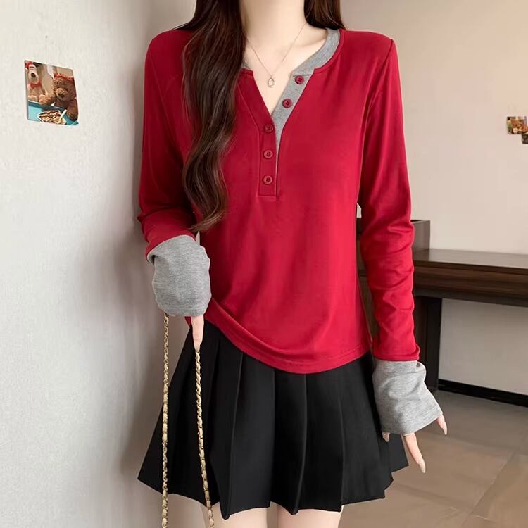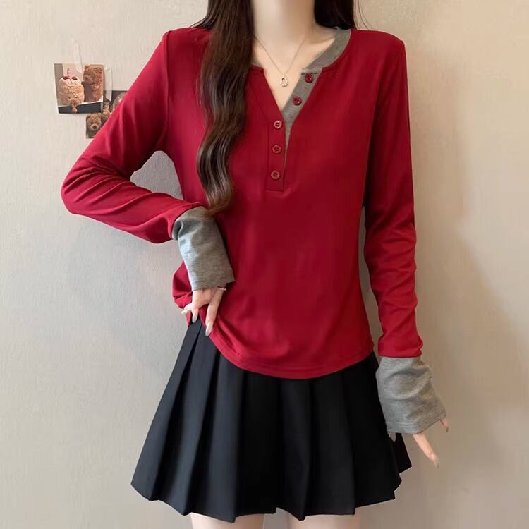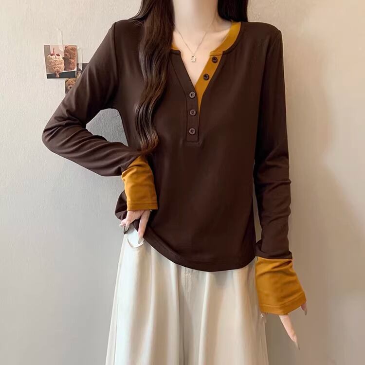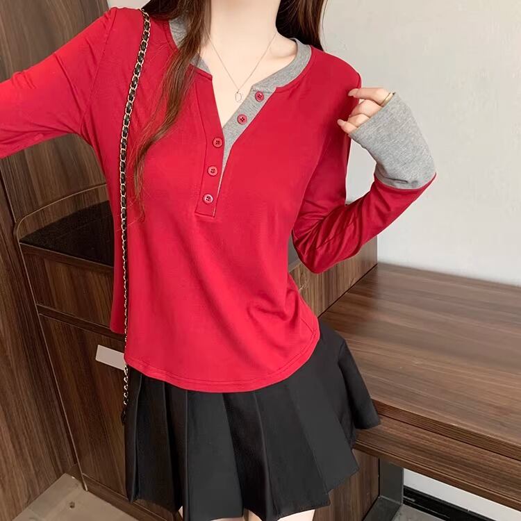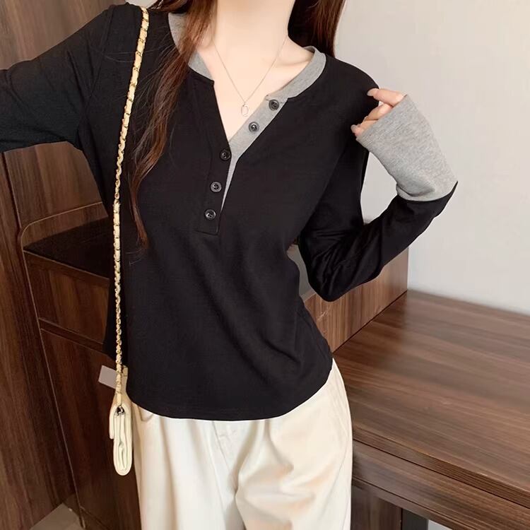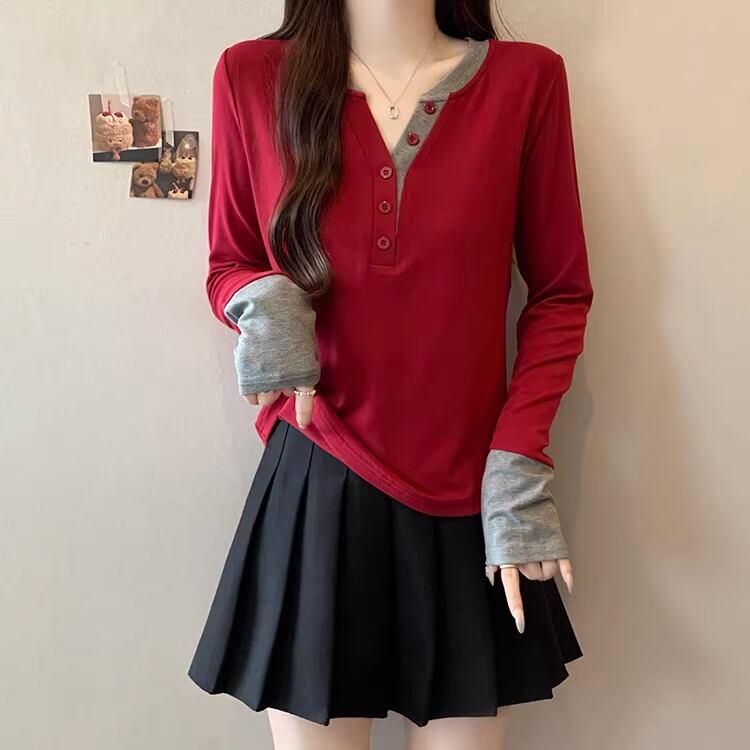レースカラーアシメボタンドッキングトップス ・71106
