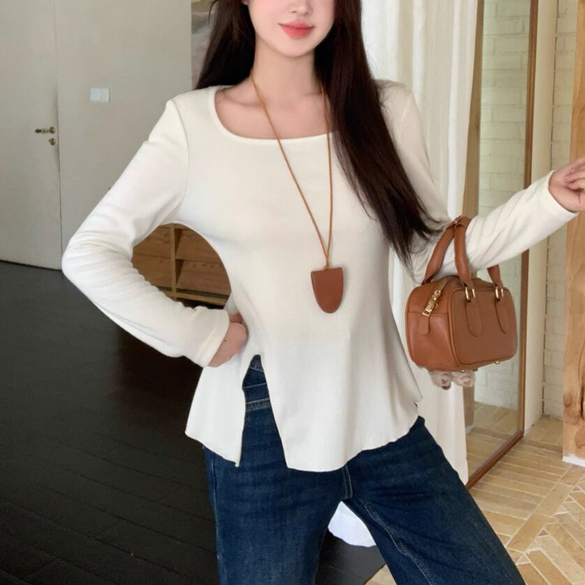 2色/フェイクレイヤードフーデッドニットトップス ・75335