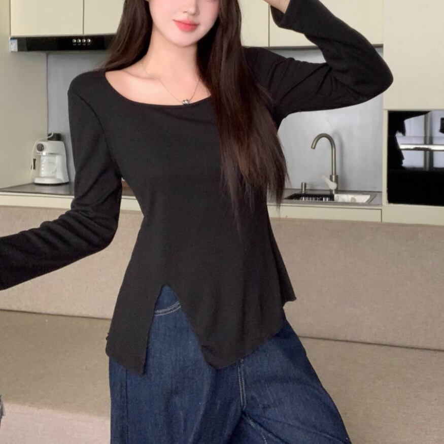 レースカラーアシメボタンドッキングトップス ・71106