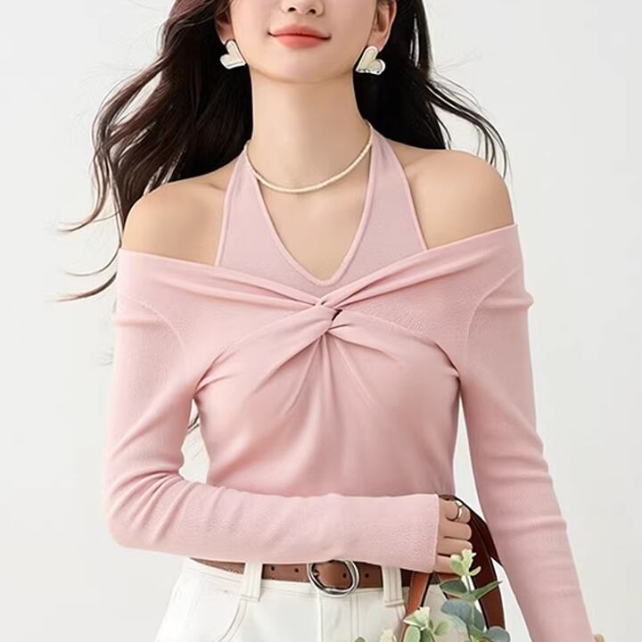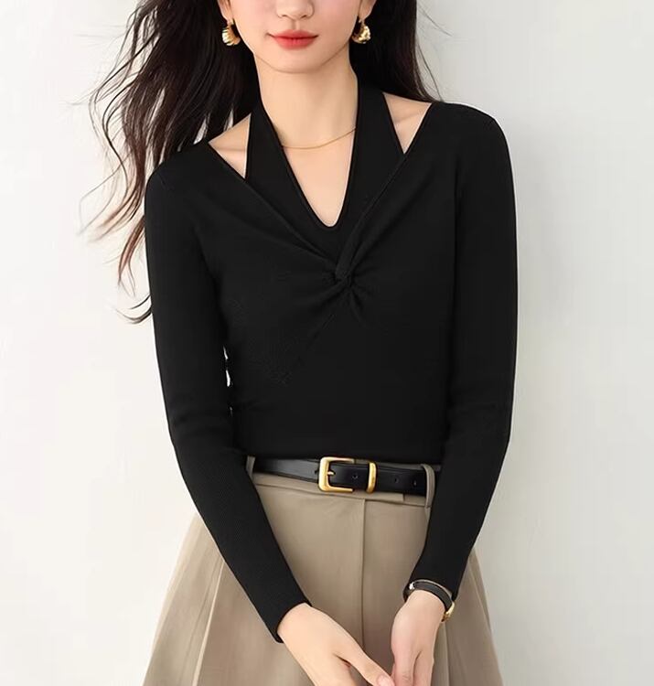 2色/フェイクレイヤードフーデッドニットトップス ・75335