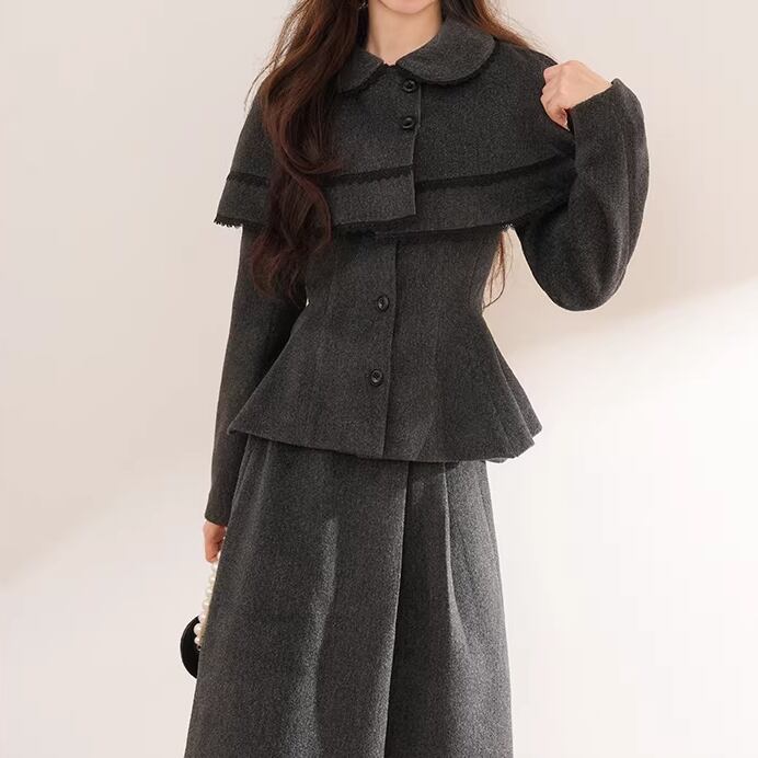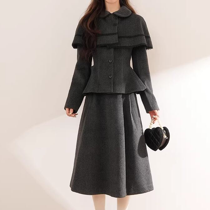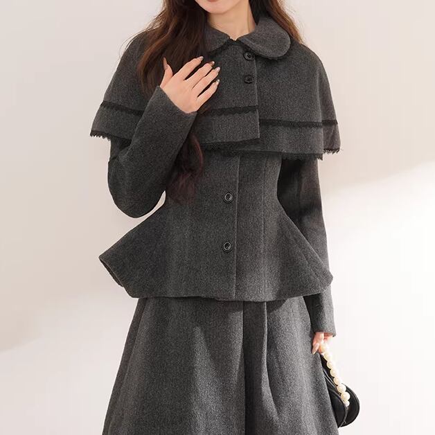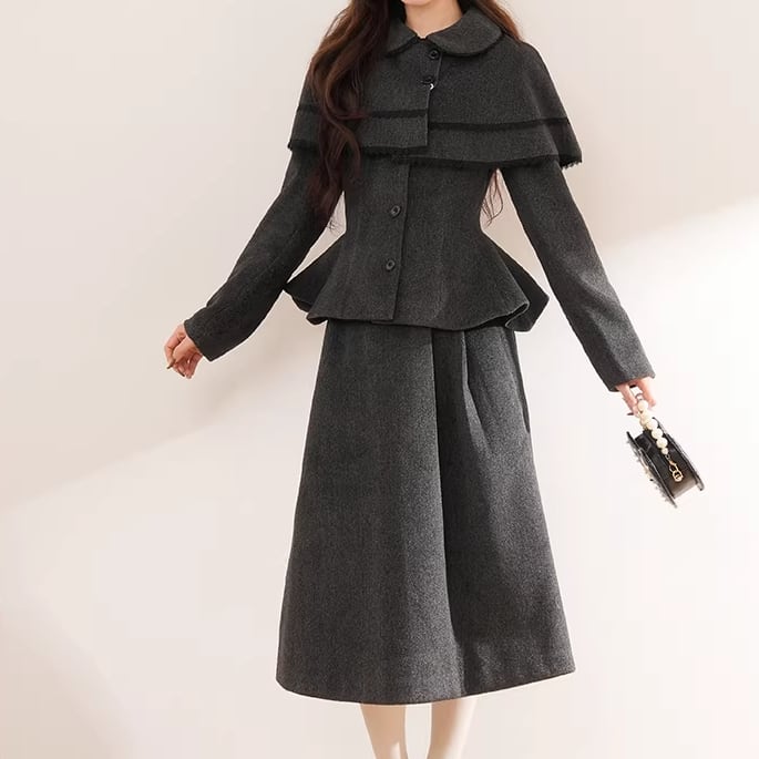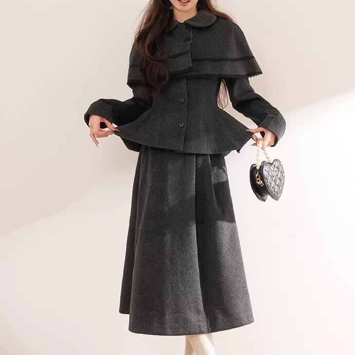 ▽Instagram「新作情報配信中」 フォローお願いいたします。 https://www.instagram.com/sucrier_closet/ ▼カラー グレー ▼サイズ [ Sサイズ ] ジャケット:着丈60cm バスト94cm 肩幅39cm 袖丈61cm ケープ:着丈28cm 袖丈35cm スカート:着丈76cm ウエスト60cm [ Mサイズ ] ジャケット:着丈61cm バスト98cm 肩幅40cm 袖丈62cm ケープ:着丈28.5cm 袖丈35.5cm スカート:着丈77cm ウエスト63cm ※1-3cm程度の誤差がある場合がございます。予めご了承ください。 ▼シーズン 秋,冬 ▼同じカテゴリの商品はこちら https://www.sucrier.jp/categories/1737171 ▽お支払い方法 ・クレジットカード決済 ・キャリア決済 (docomo/au/Softbank/Y!mobile) ・後払い決済 (商品お届け後コンビニ払いなど) ▽注意点 ※こちらの商品は決済から10日-3週間前後でのお届けとなります。 ※配送日時指定等に関しては、ご指定できないことご了承くださいませ。 ※できる限り早くお届けできるように手配させて頂きます。 ※検品はしておりますが、もし届いた商品に不備がありましたら、誠実に対応させていただきます。 商品ID:SC075292