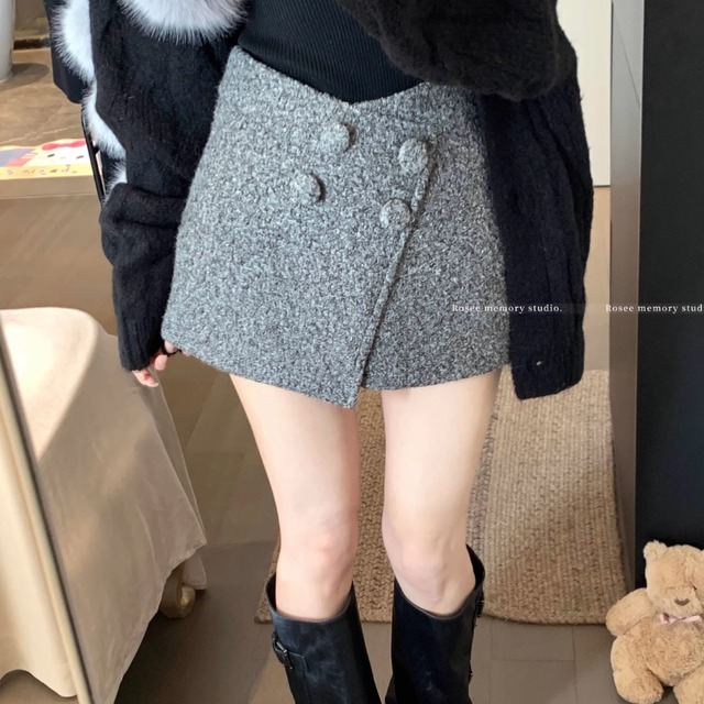 3色/ダブルボタンウールタッチミニスカート ・75186