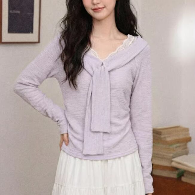 2色/フェイクレイヤードフーデッドニットトップス ・75335