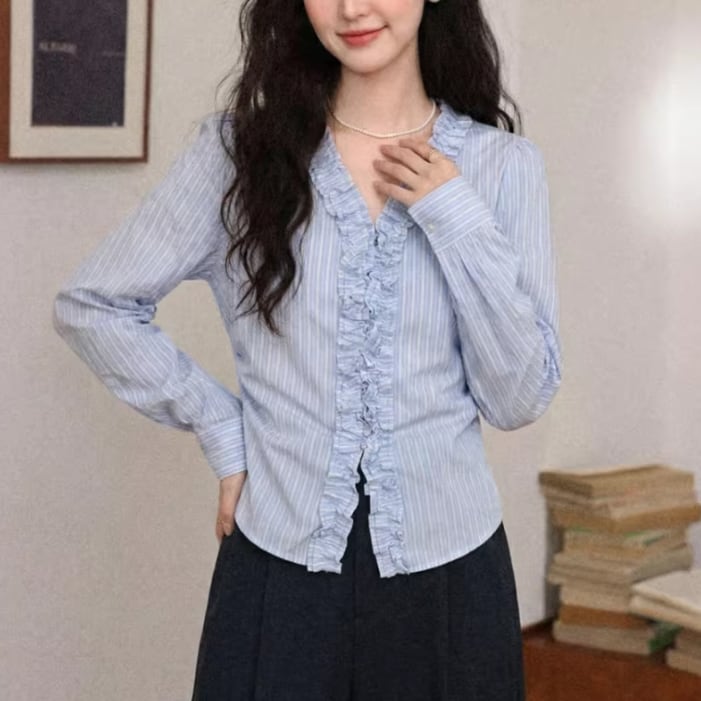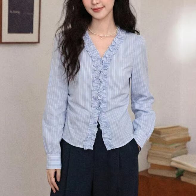 フラワー刺繍フリルカフスシャツ ・75301