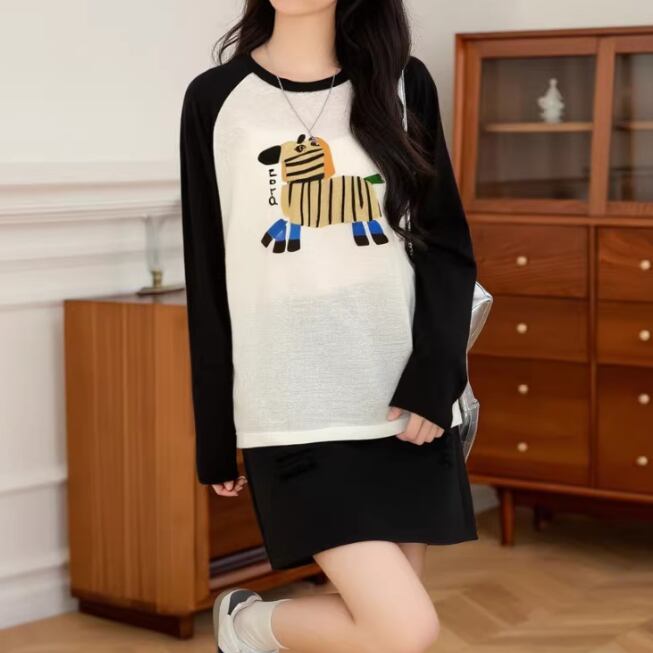2色/フェイクレイヤードフーデッドニットトップス ・75335
