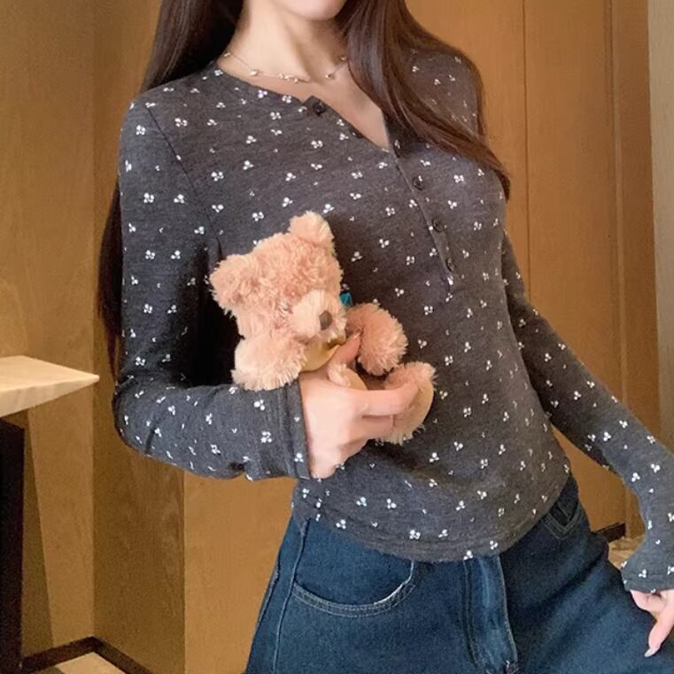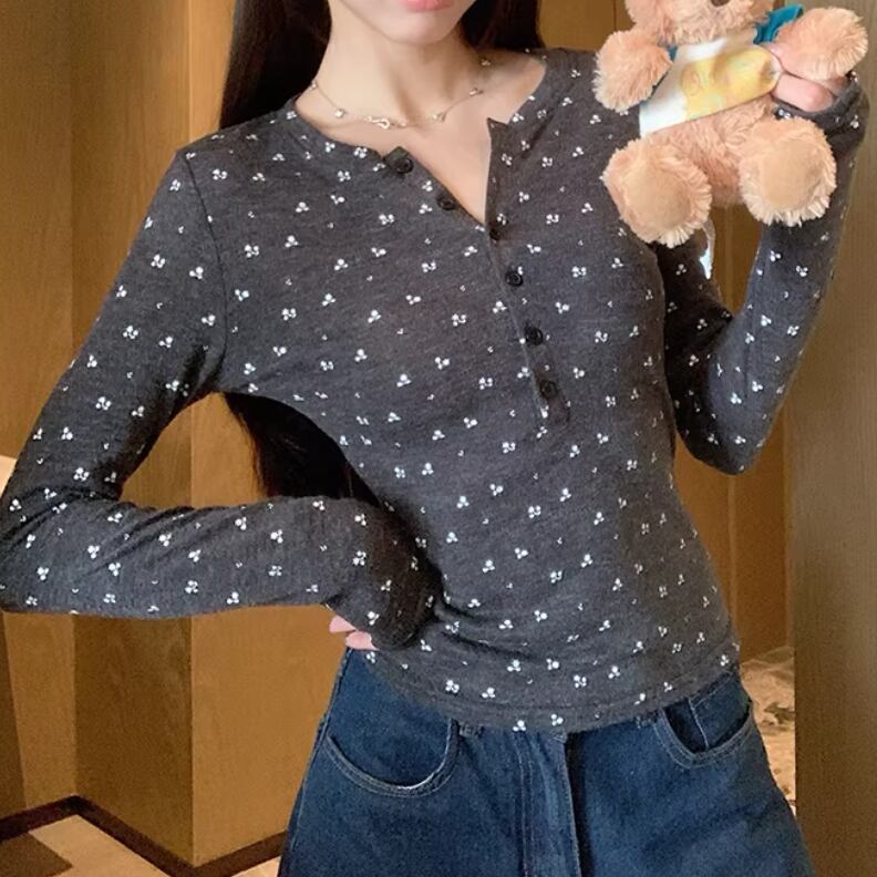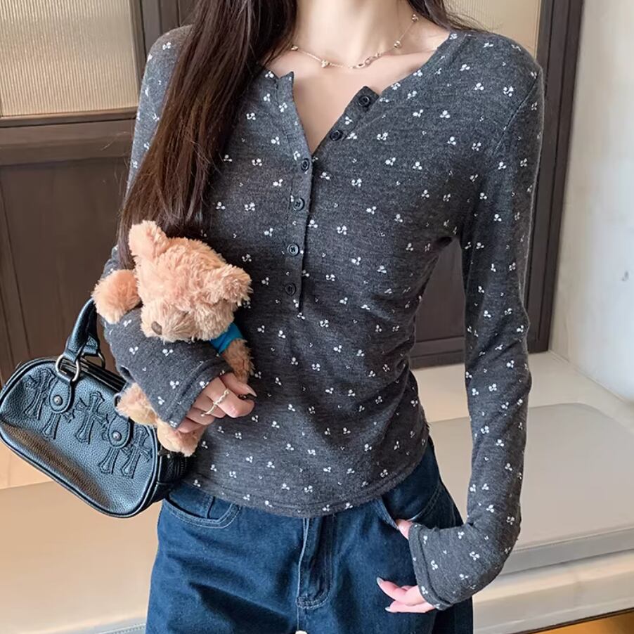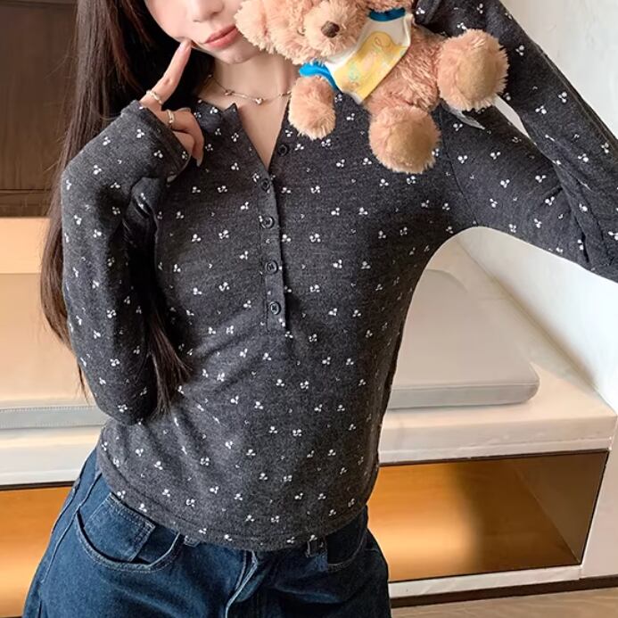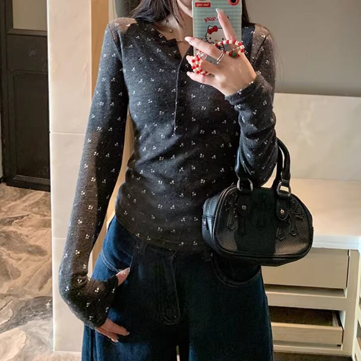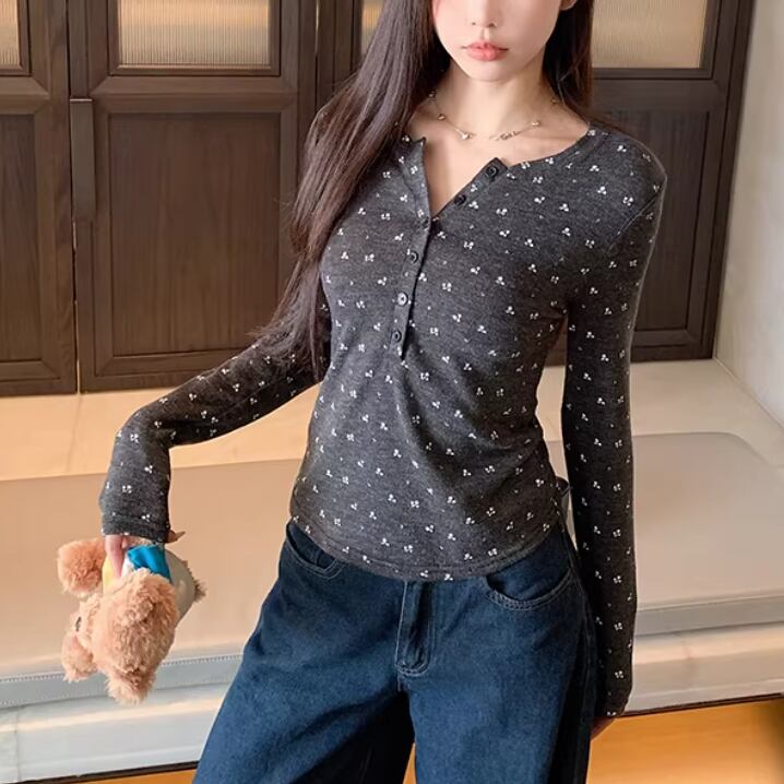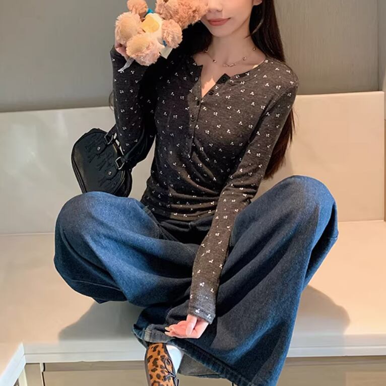 レースカラーアシメボタンドッキングトップス ・71106