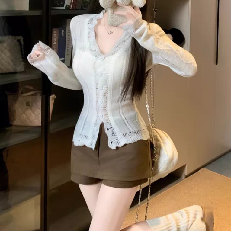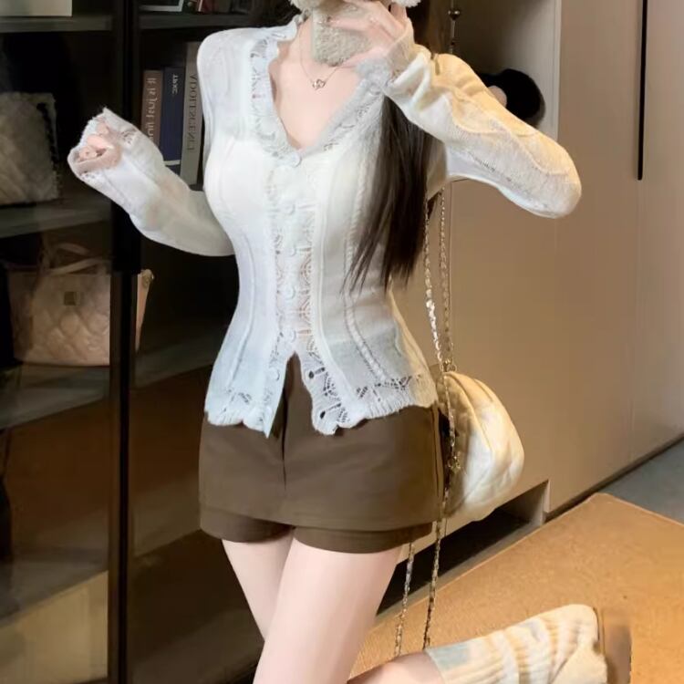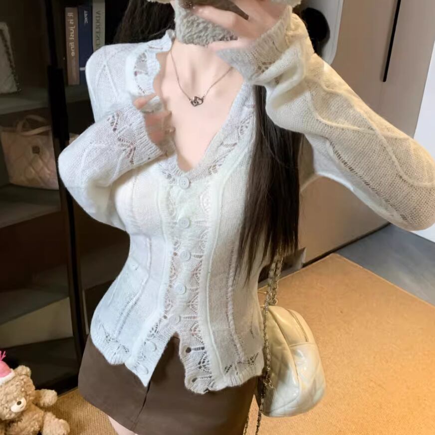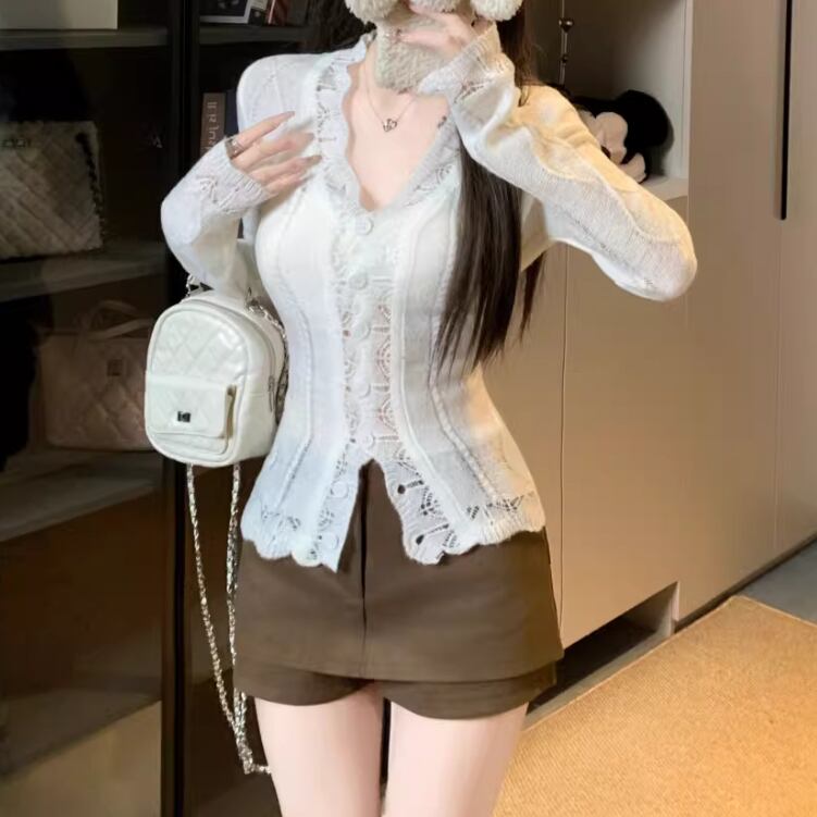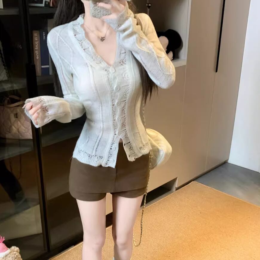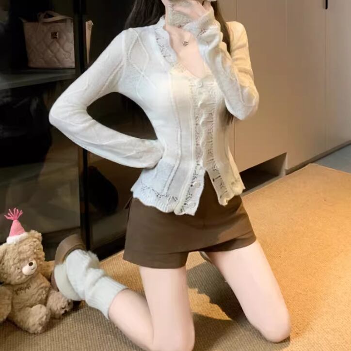 ラウンドネックドットニットカーディガン ・75296