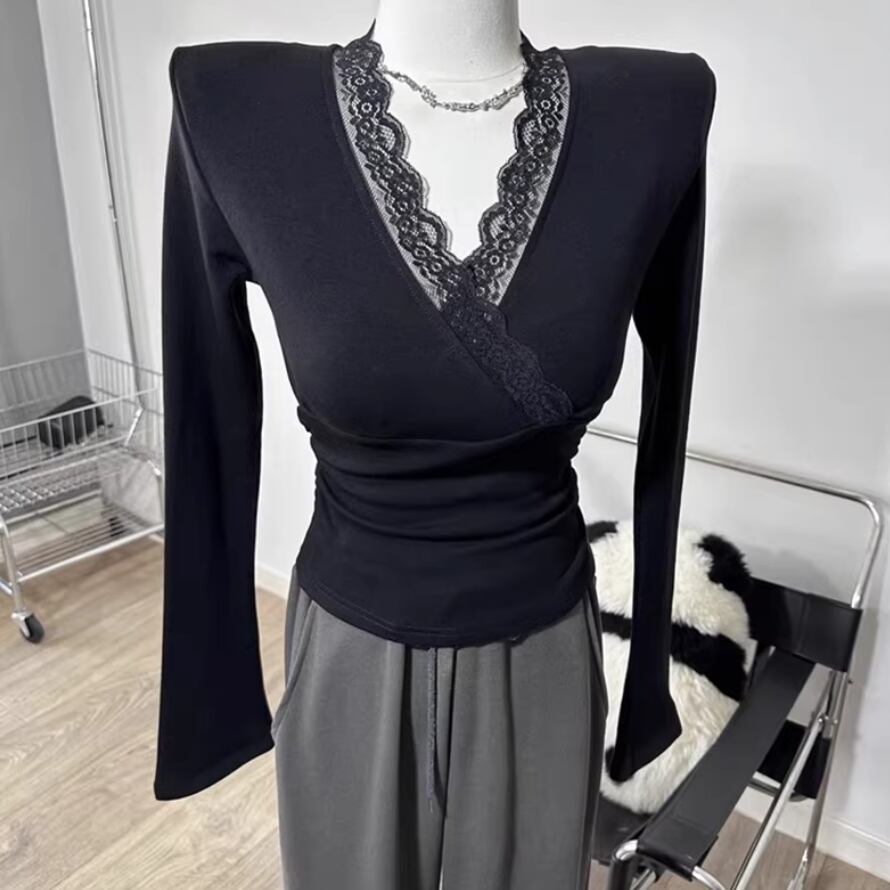 2色/フェイクレイヤードフーデッドニットトップス ・75335
