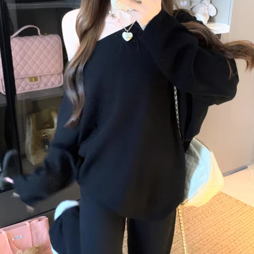 2色/バックリボンレースVネックニット ・75154