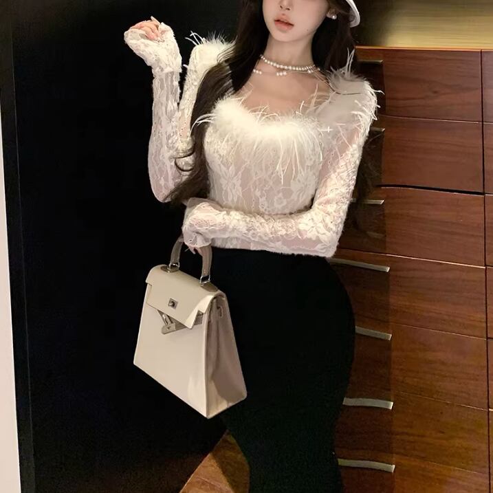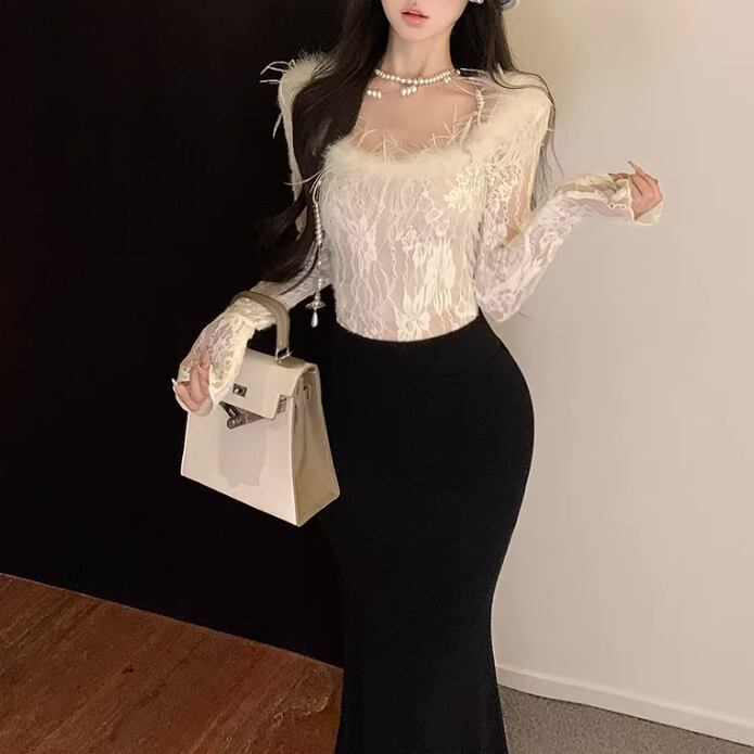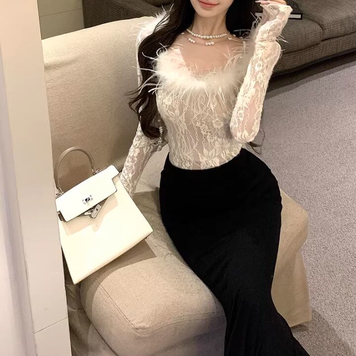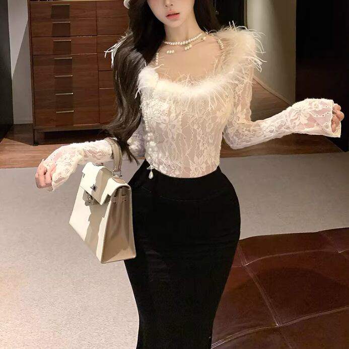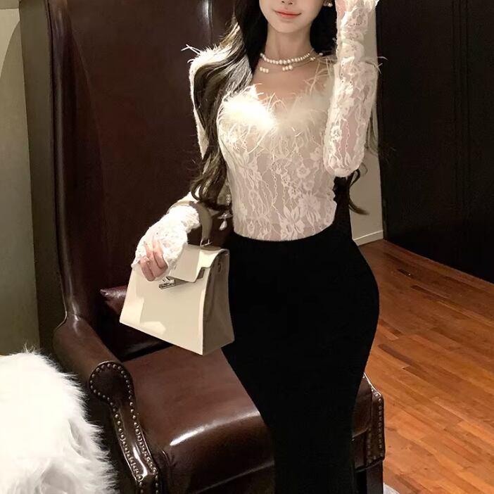 レースカラーアシメボタンドッキングトップス ・71106